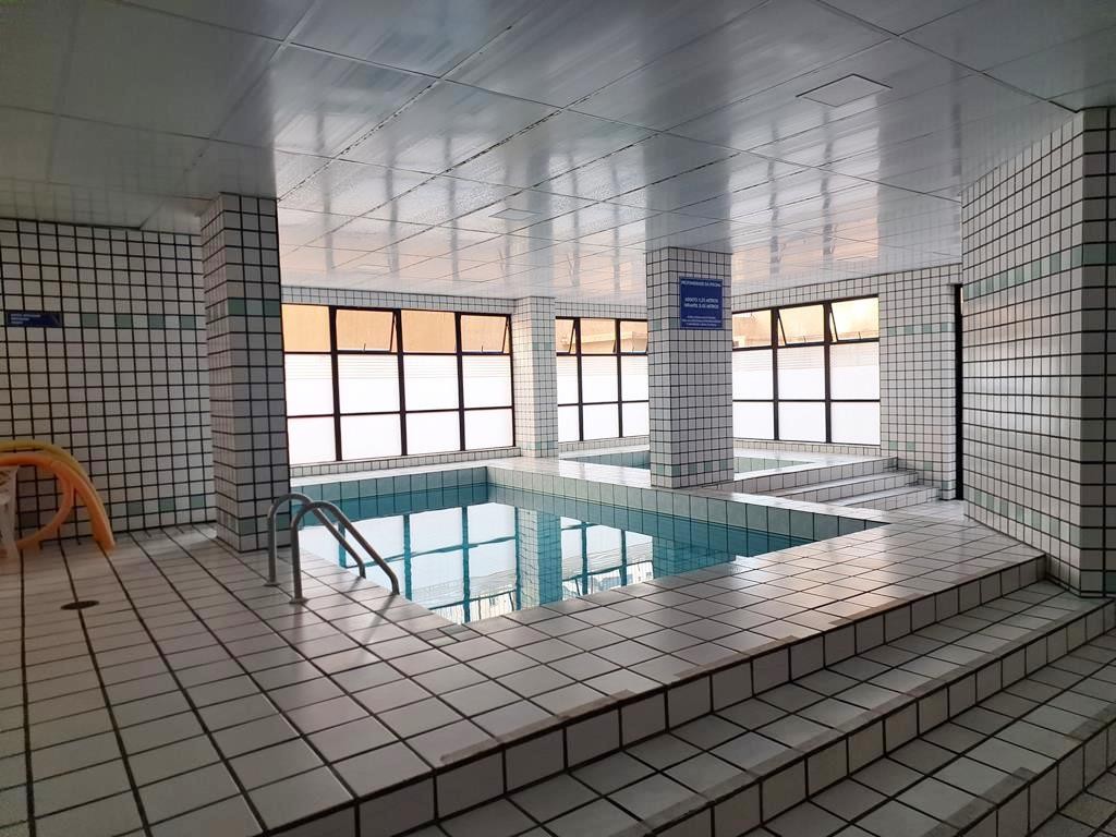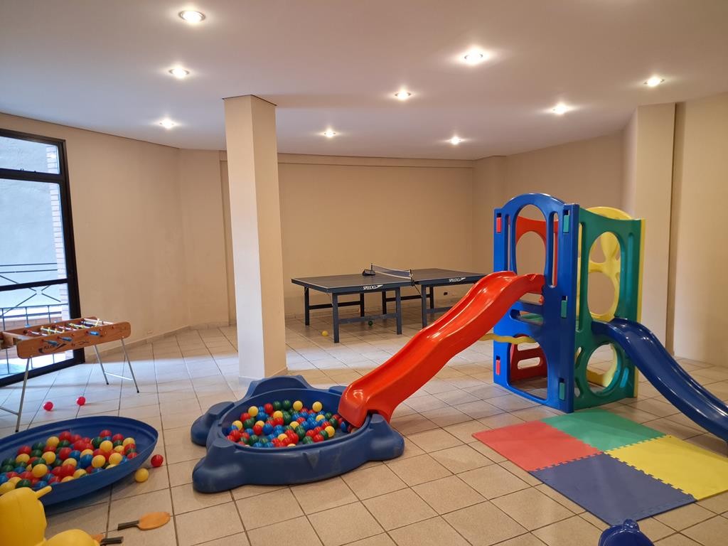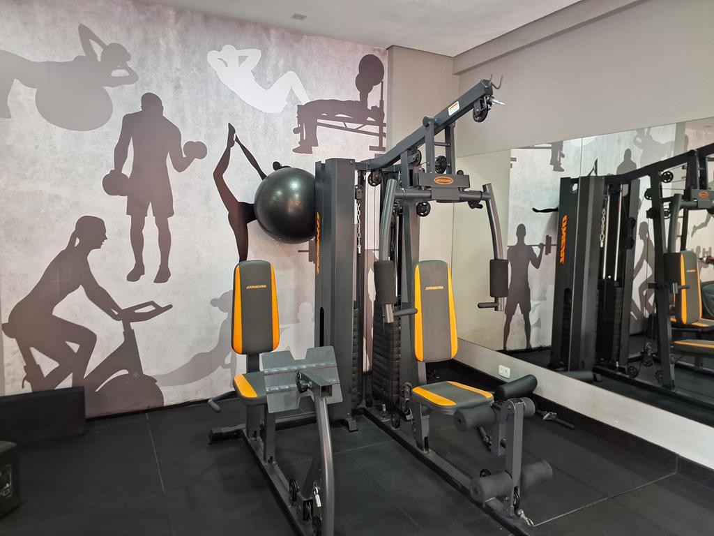 O condomínio oferece uma área de lazer completa: portaria 24 horas, piscina, academia, sala de jogos, salão de festas, churrasqueira e playground.