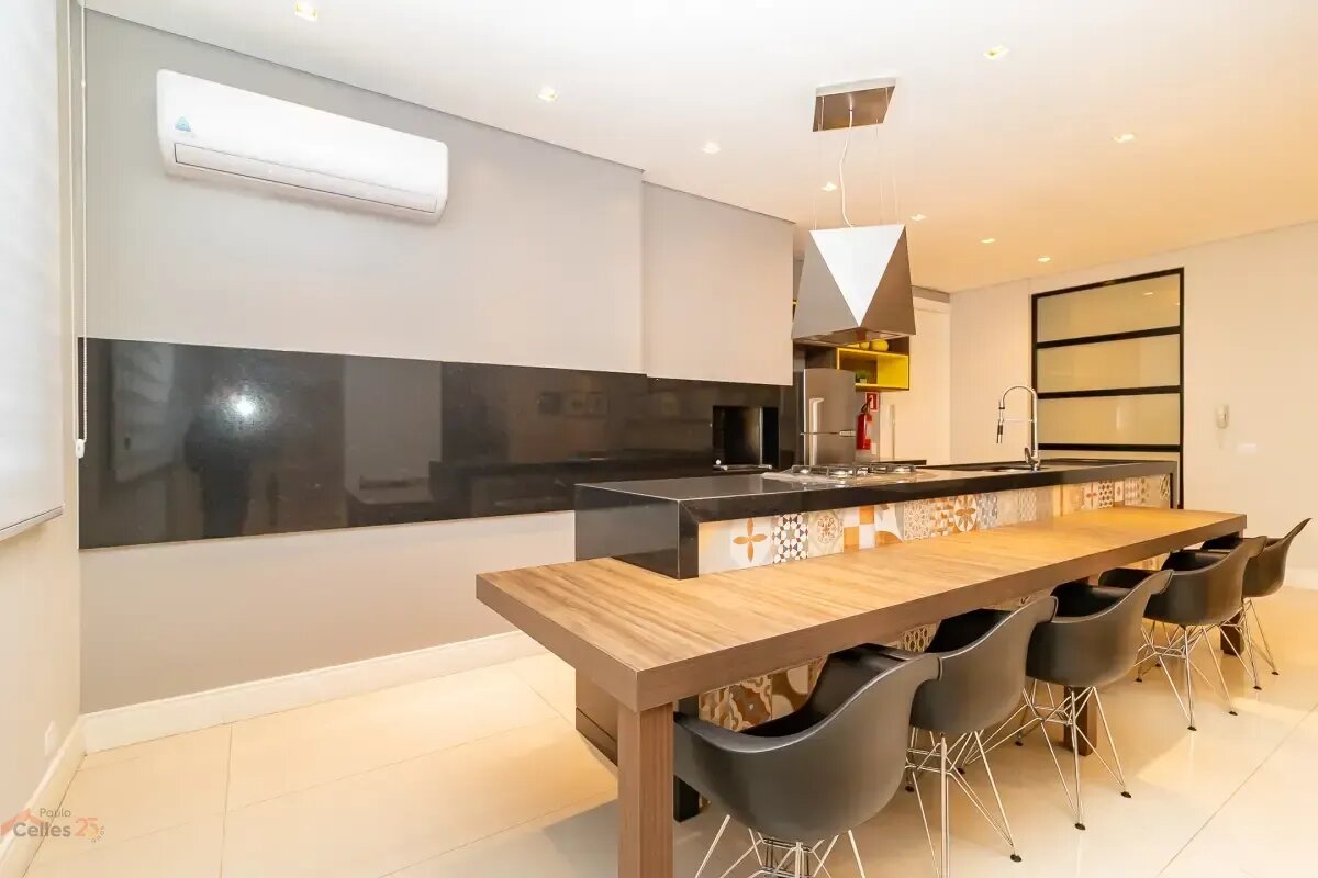 O apartamento oferece ambientes bem distribuídos e pensados para o conforto: são 2 dormitórios, sendo 1 suíte, além de banheiro social. A área social integra uma sala para dois ambientes com acesso a uma ampla sacada, perfeita para momentos de relaxamento. A cozinha gourmet com churrasqueira a carvão traz um toque especial para receber, além de área de serviço independente. Conta ainda com aquecimento central de água com medição individual por telemetria e infraestrutura para ar-condicionado.