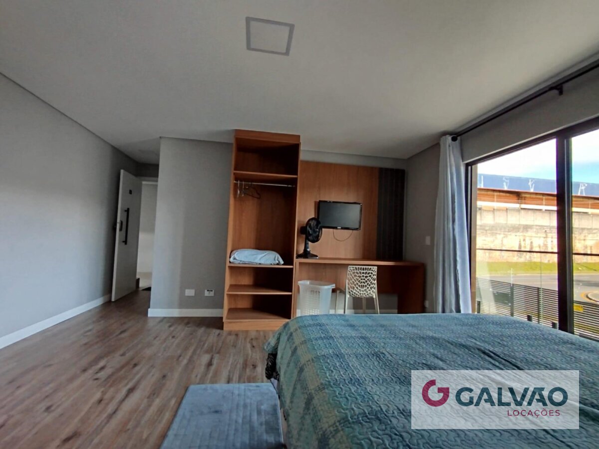 Com 25m², este studio mobiliado apresenta um fino acabamento, com atenção especial aos detalhes, com microondas , fogão elétrico 2 bocas , cama casal colchão box, frigobar , demais móveis Planejados .