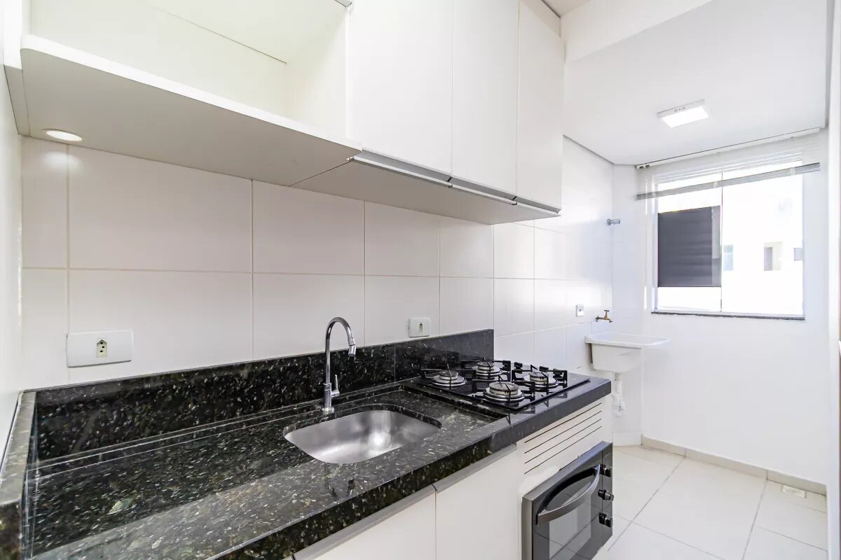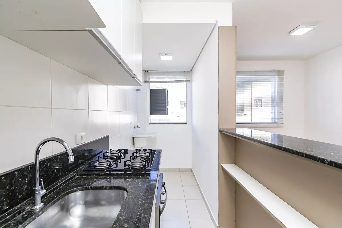 Apartamento com 2 dormitórios em ótima localização no Bairro Alto. Sala para dois ambientes, cozinha com conceito aberto, área serviço, bwc social, 1 vaga de estacionamento descoberta, exclusiva, de número 03. Fácil acesso ao Centro, a Linha Verde e tendo nas imediações Hospital Vita, e toda infraestrutura de comércio. Portão eletrônico, câmeras de segurança.