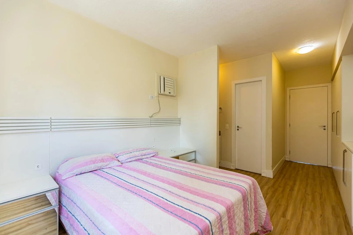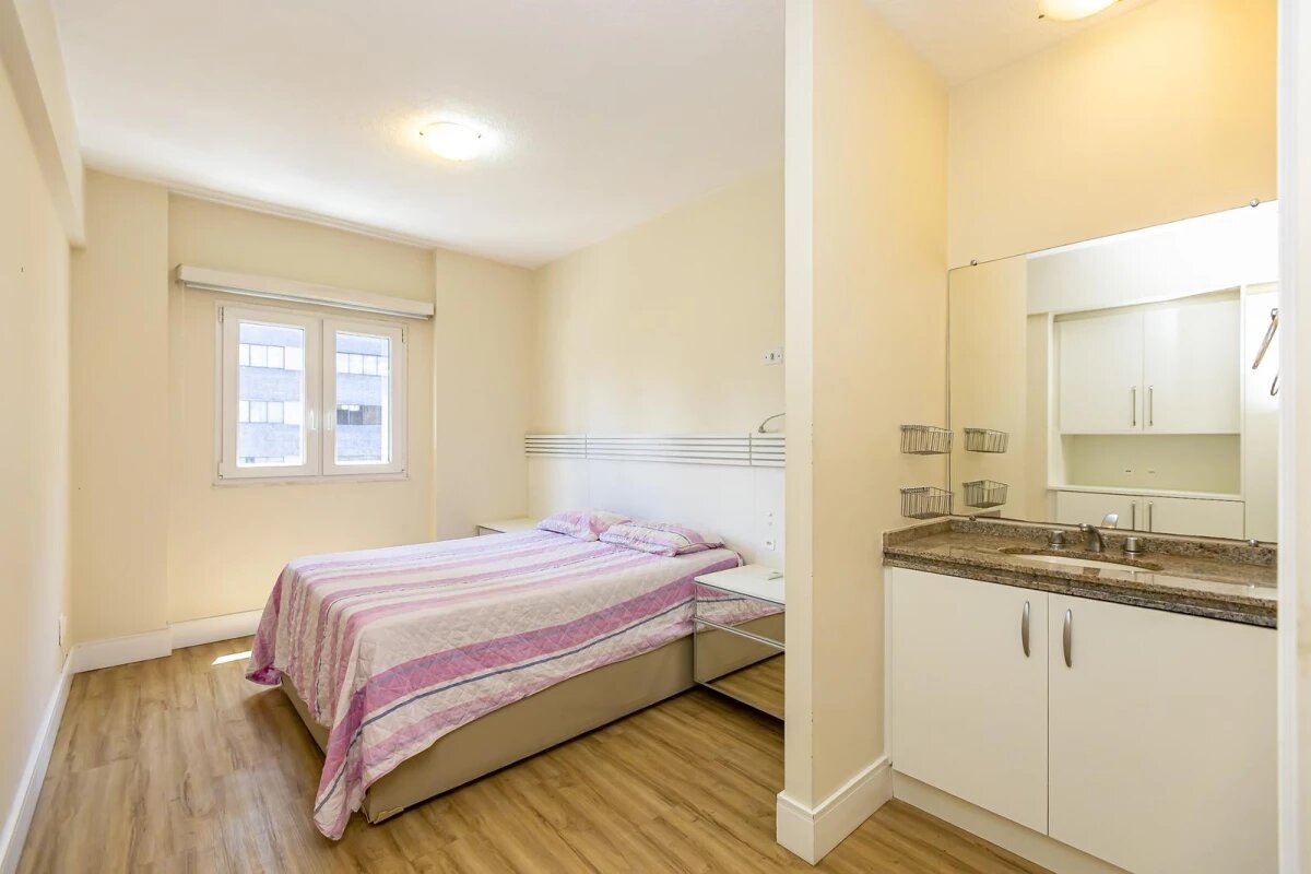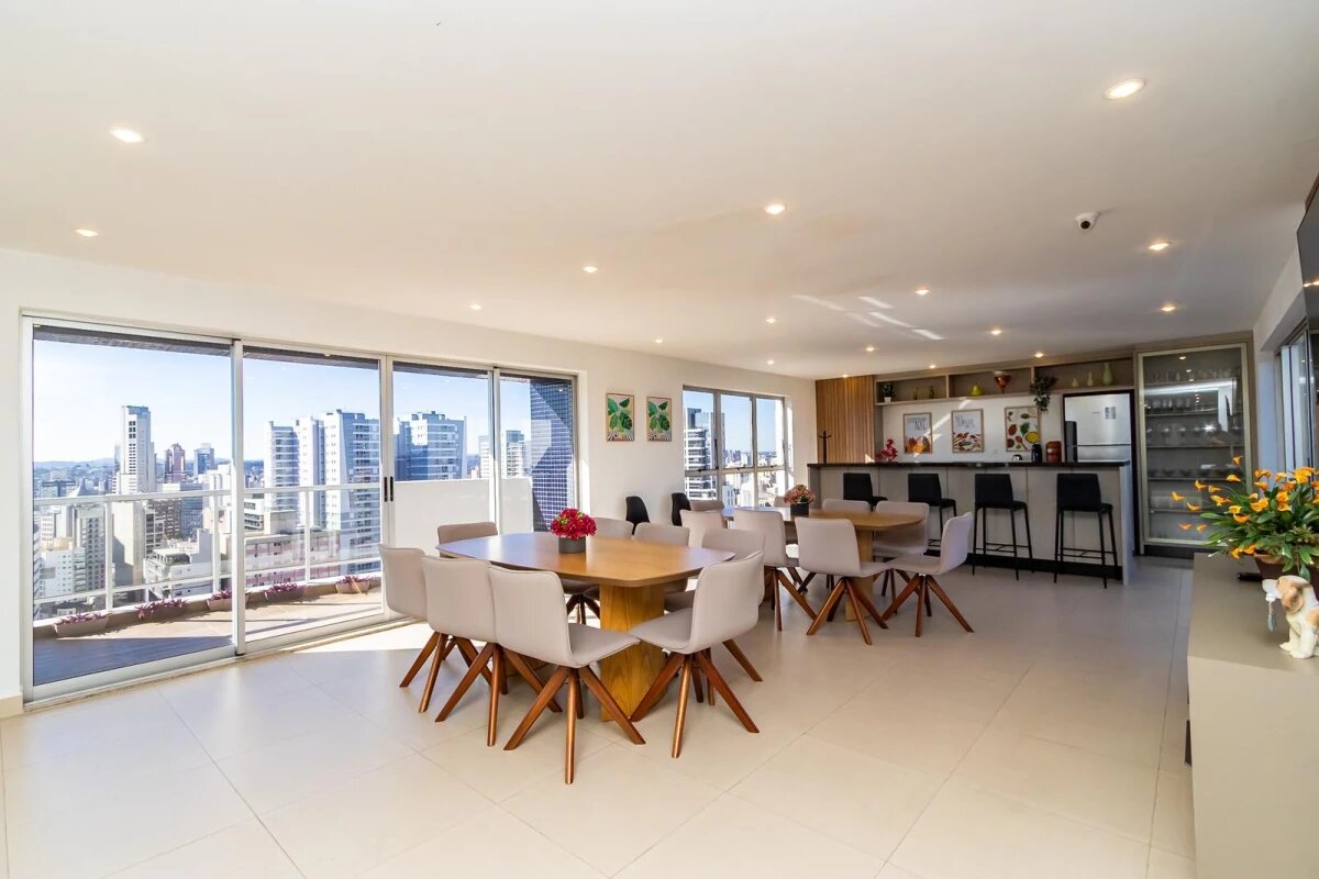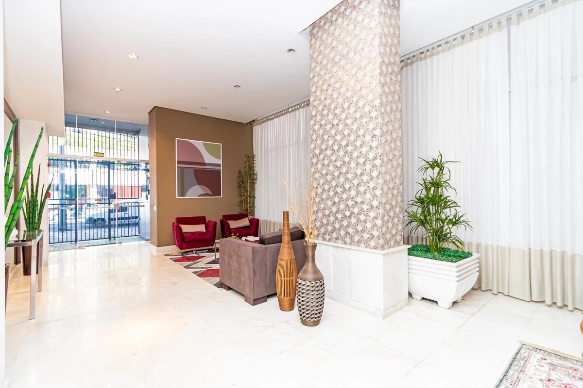 Detalhes: Apartamento 2 quartos à venda no Batel ao lado do shopping Curitiba. Já está mobiliado para entrar e morar. Com uma linda vista permanente para a praça e para o shopping o apartamento conta com muita iluminação natural e excelente incidência de sol. São 2 quartos sendo 1 suíte, sala 2 ambientes, sacada com churrasqueira e já fechada em vidro, área de serviço separada da cozinha, 1 vaga de garagem coberta e livre. A suíte conta com ar condicionado e janela antirruído. Aquecimento a gás. Condomínio com portaria 24 horas, salão de festas, salão de jogos, espaço gourmet, sala de ginástica, bicicletário e bicicletário.