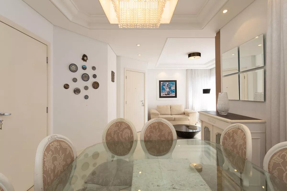 A sala para dois ambientes é ampla, bem iluminada e conta com teto rebaixado em gesso, agregando um toque de sofisticação ao espaço.
