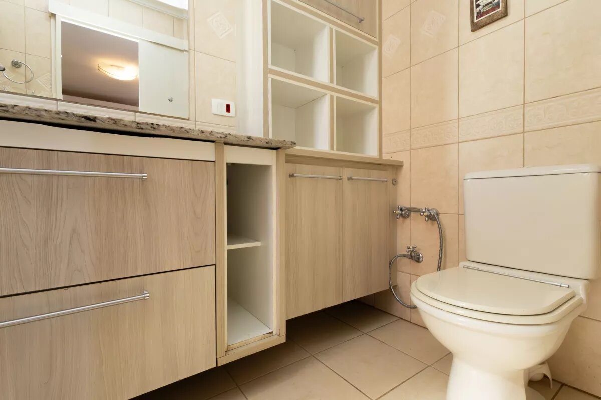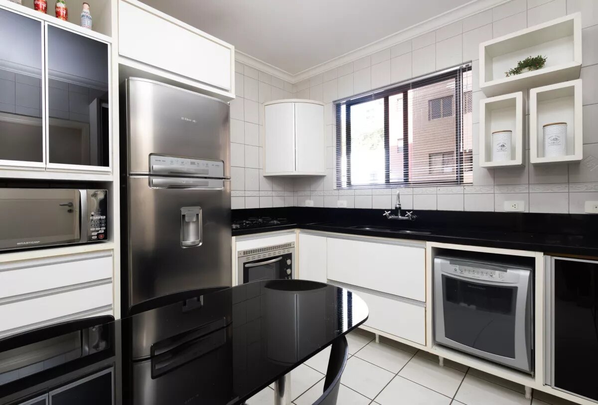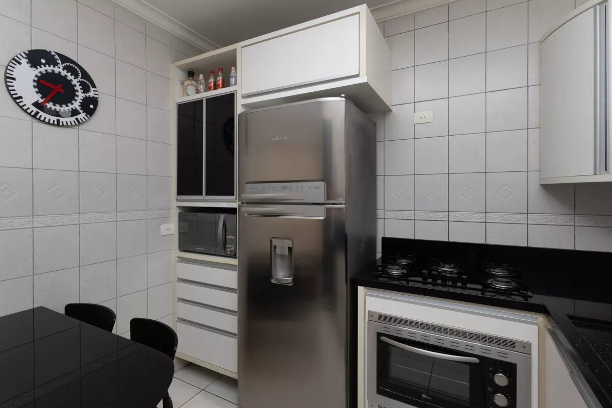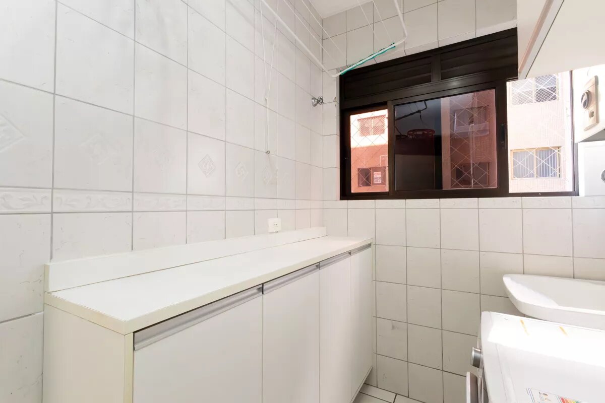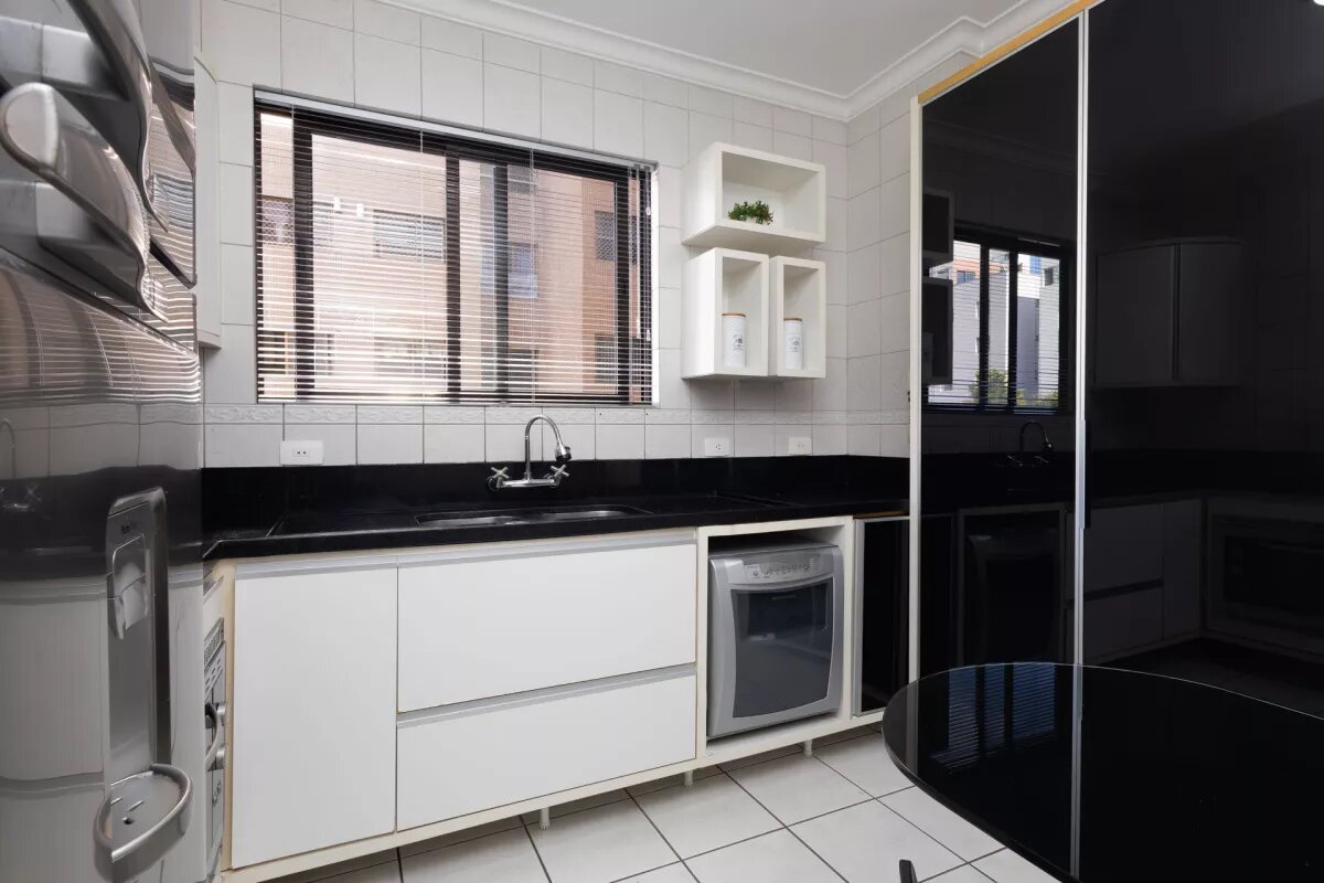 A cozinha e a área de serviço também contam com armários sob medida, otimizando o espaço e oferecendo ainda mais funcionalidade ao dia a dia.