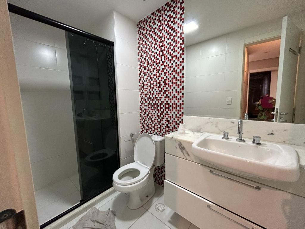 Banheiros espaçosos, com acabamentos de alta qualidade. Prédio novo e moderno, com infraestrutura completa e serviços de qualidade.