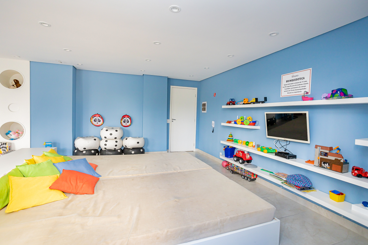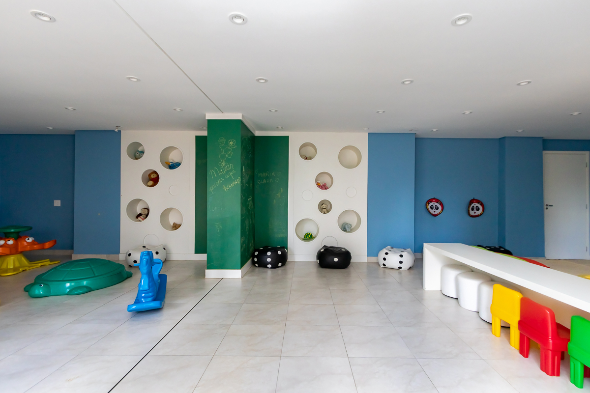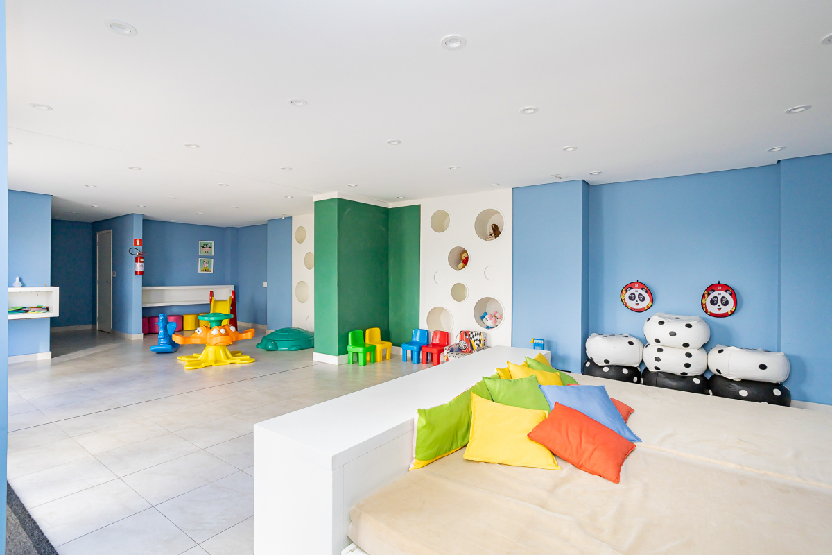 Espaço gourmet, salão de festas adulto com copa e sanitários (um para cadeirantes), espaço churrasqueira com copa, quadra poliesportiva, playground, rock band, piscina adulto e infantil, espaço Kids, brinquedoteca com sanitários, mini cidade, sala de jogos, lounge adolescente, quiosque de leitura, hall/ galeria, fitness, espaço bem- estar e espaço pet.