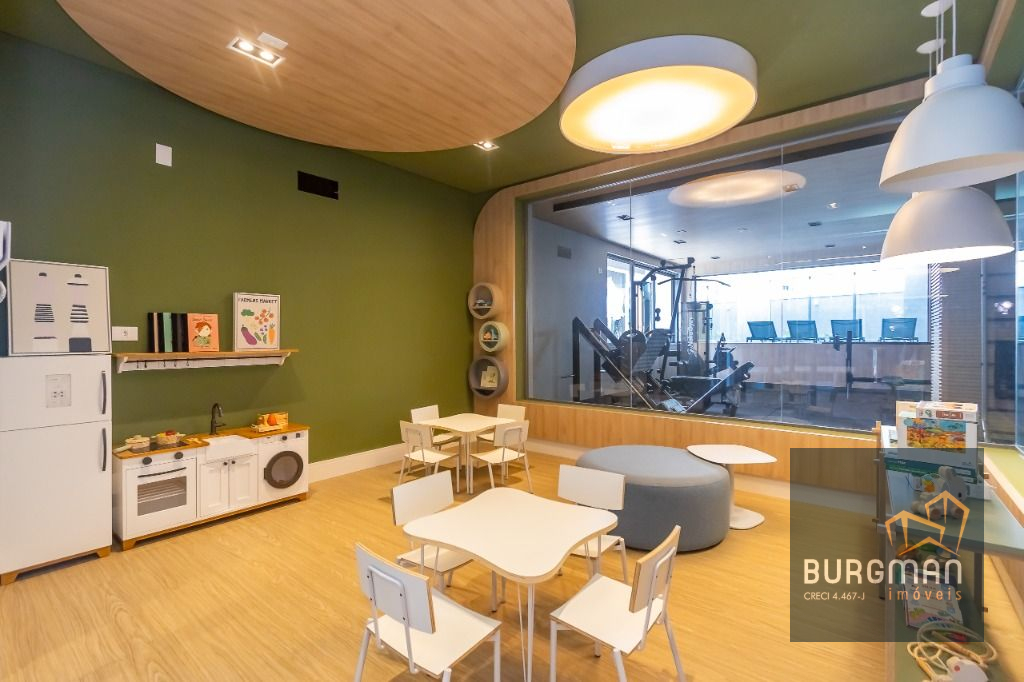 As áreas de lazer conta com playground e salões de festas decorados com design contemporâneo, piscina coberta, espaço gourmet, sport bar, academia completa, dois espaços kids, lounge externo e espaços dedicados ao bem-estar, como o solário e a sauna.