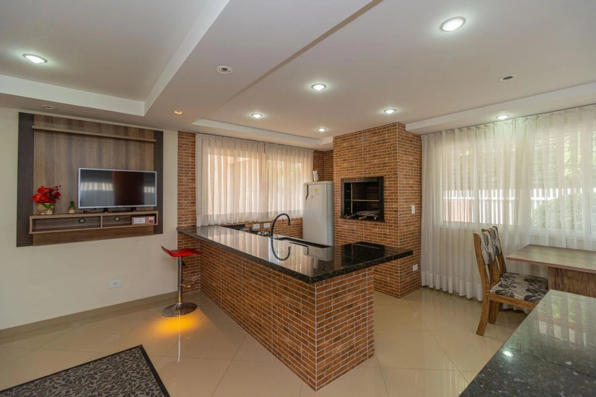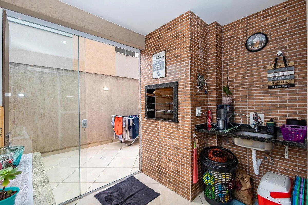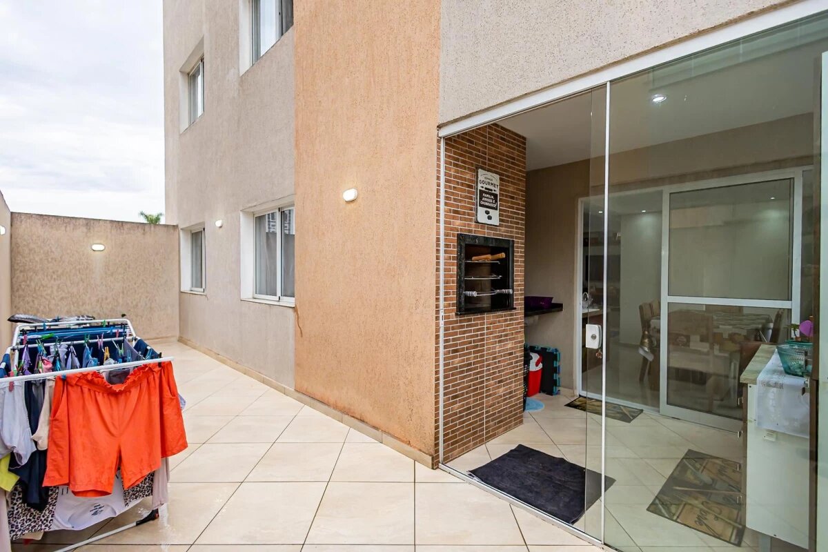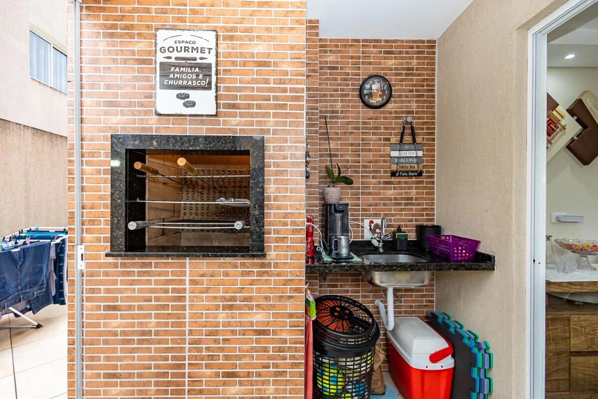 O condomínio oferece salão de festas e churrasqueira coletiva, proporcionando lazer e convivência.
