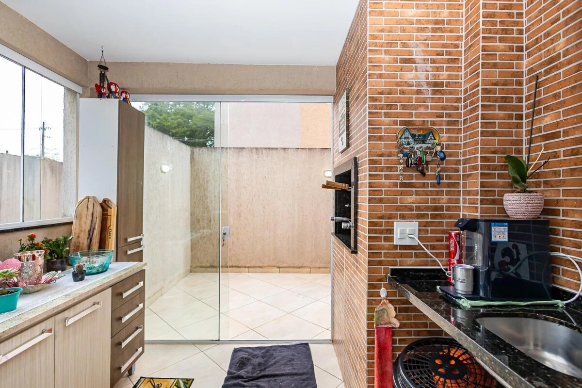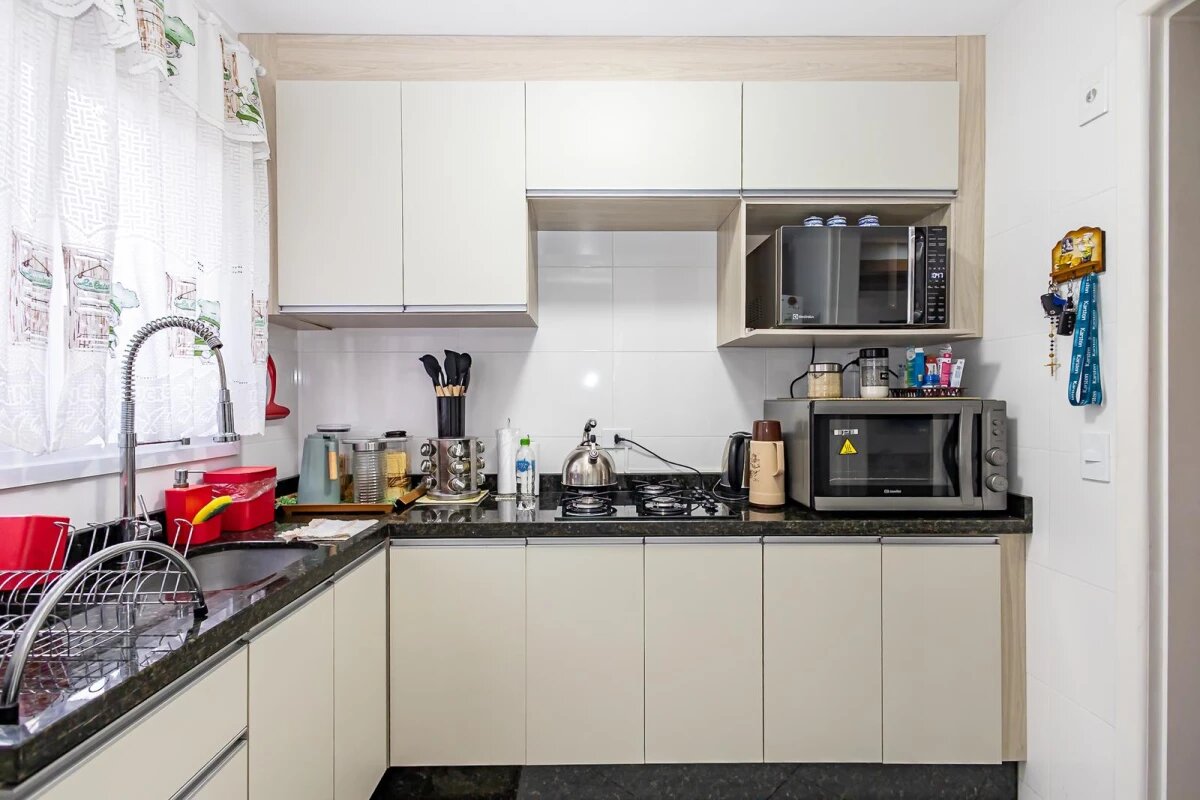 Cozinha com armários planejados, prática e funcional.