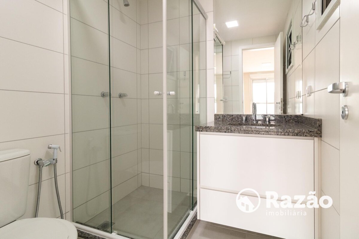 - 01 Banheiro social completo apresentando ducha a gás e acabamento moderno