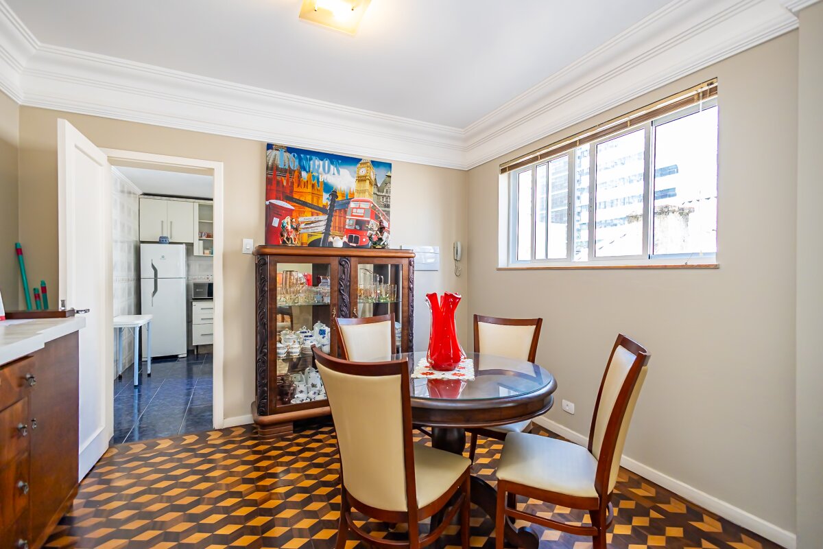 Localização: Região nobre do Centro, divisa com o Batel. Conveniência total com mercados e serviços na porta de casa.