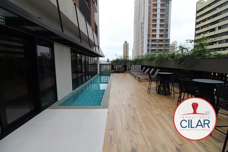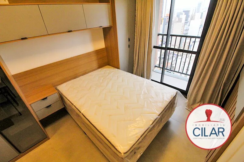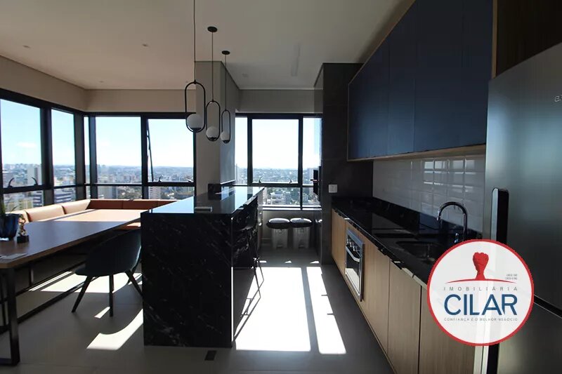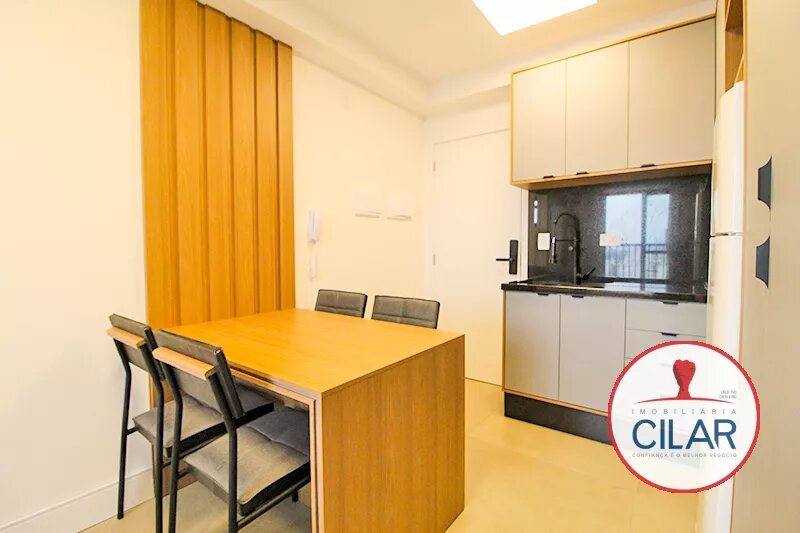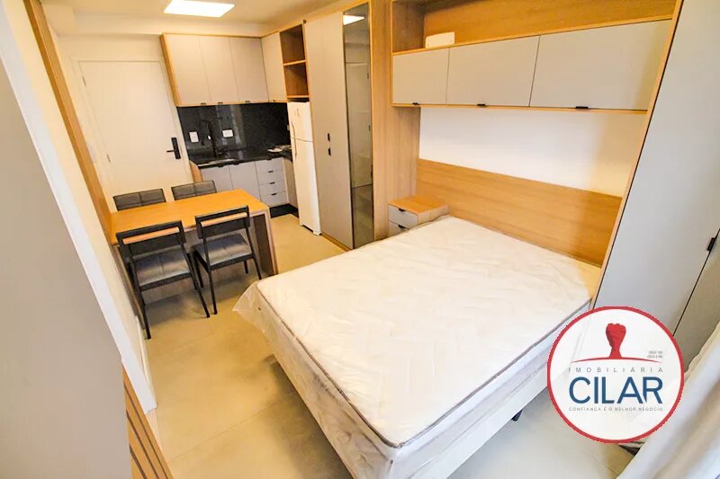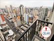 Apartamento com piso cerâmico, contendo mesa com 04 cadeiras, armários embutidos, cama box casal, cortinas, sacada, armários planejados e painel para TV;