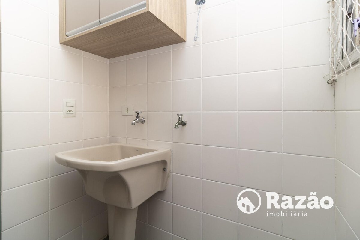 Área de serviço com tanque e armário, trazendo praticidade para as tarefas domésticas.