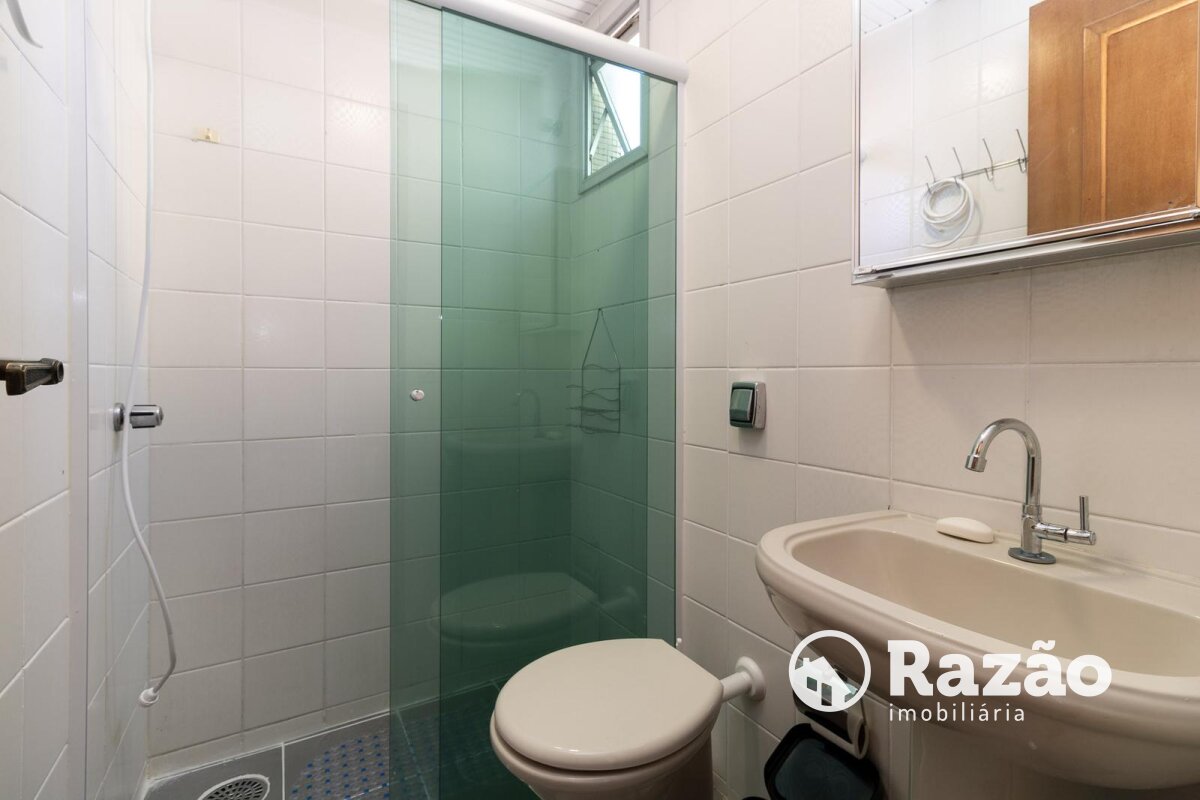 01 Banheiro equipado com espelho e box de vidro, oferecendo funcionalidade no dia a dia.