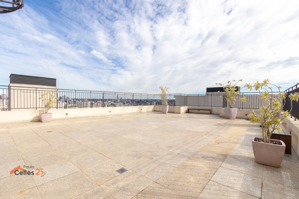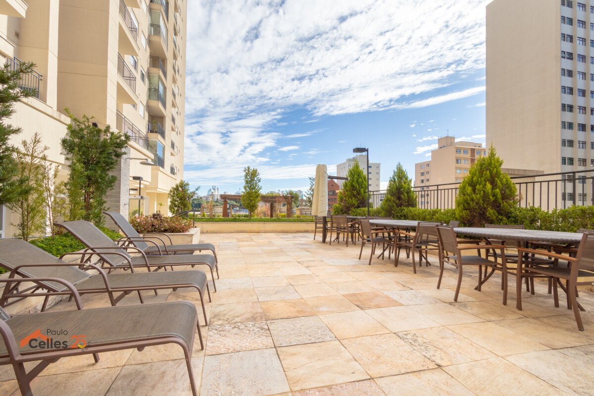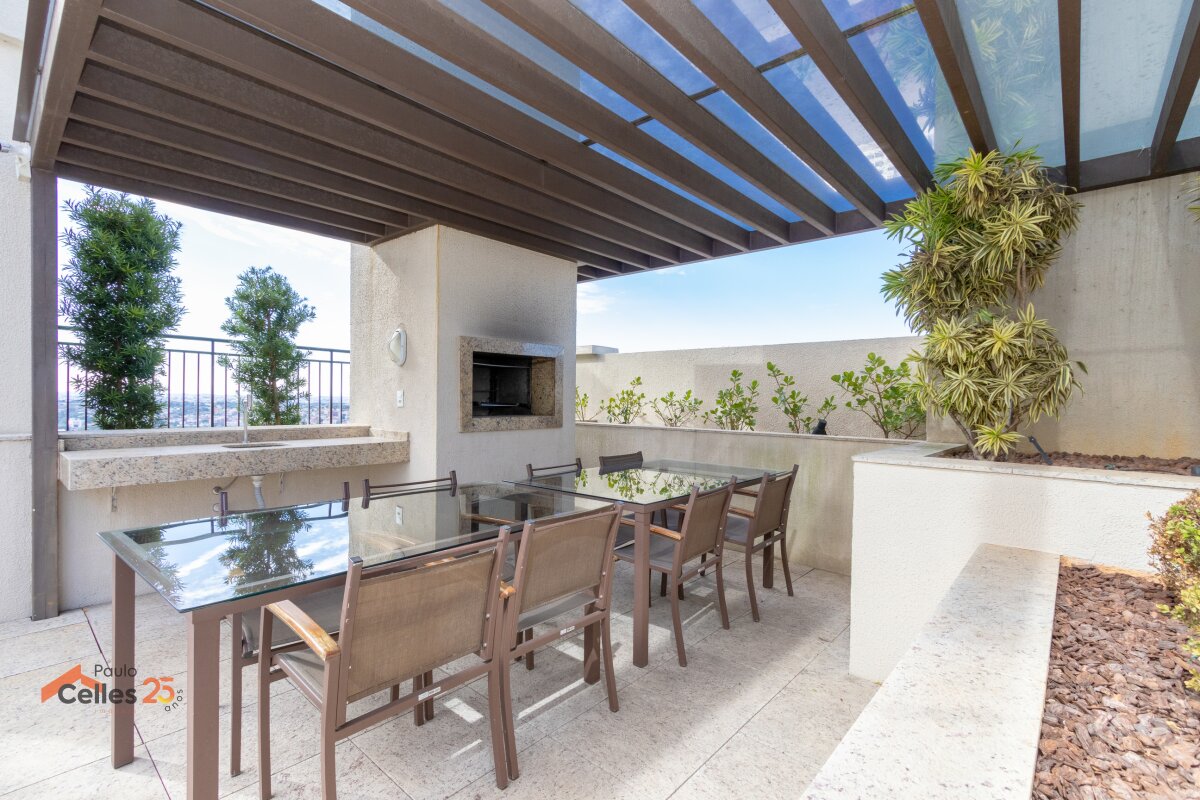 Terraço com vista 360º da cidade, espaço gourmet com churrasqueiras cobertas e lounge.