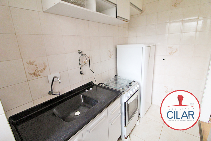 01 Cozinha com armário, pia, fogão 04 bocas e 01 refrigerador;