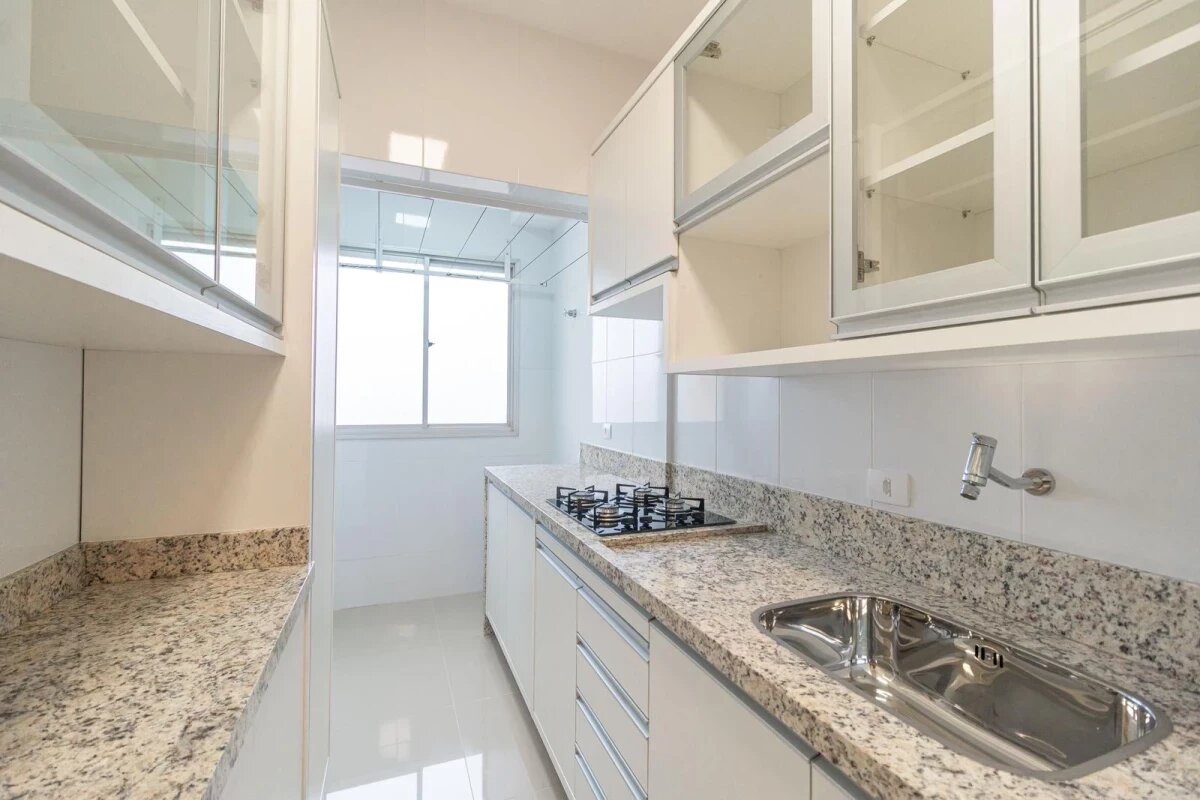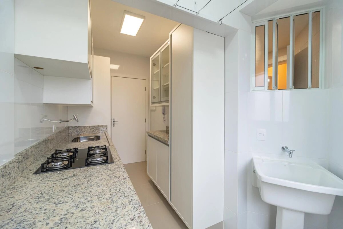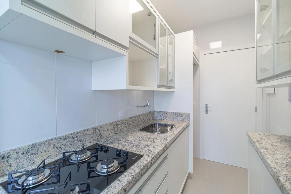 - Cozinha com armários planejados e cooktop,