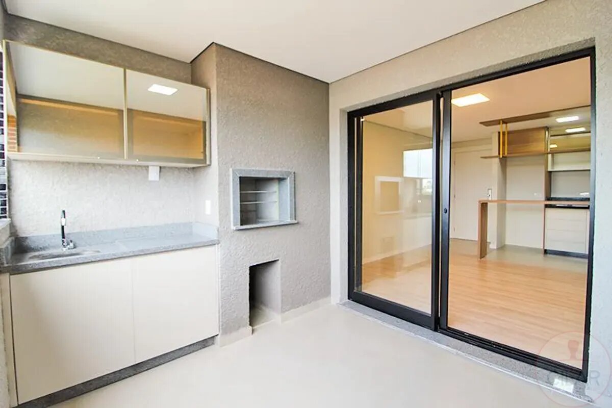 01 Sala para 2 ambientes, sacada com churrasqueira e pia;