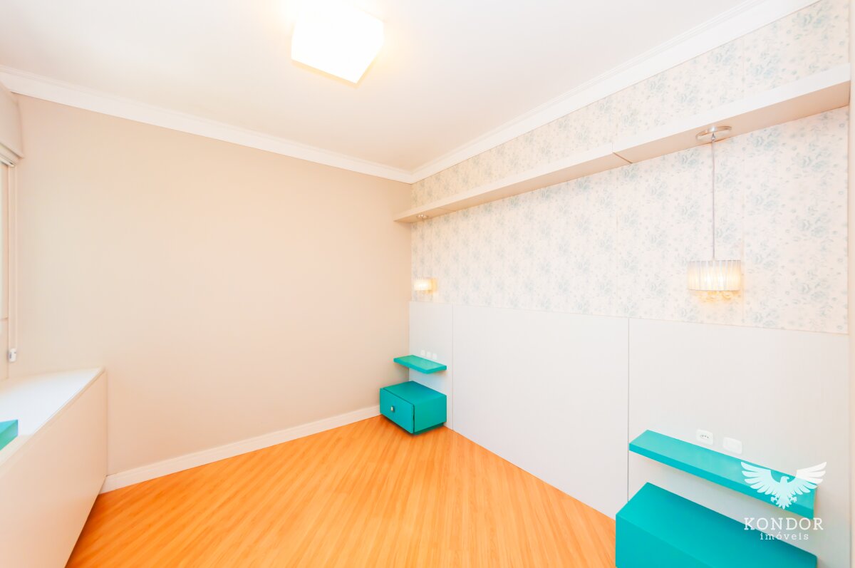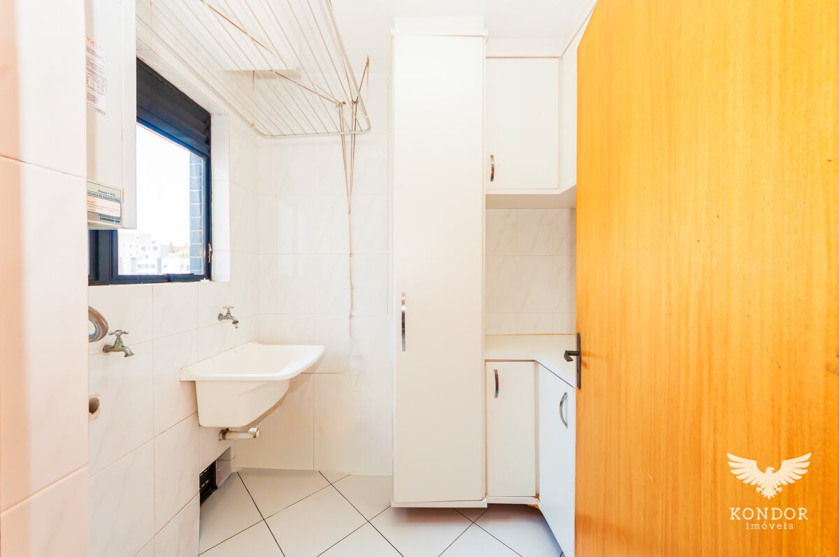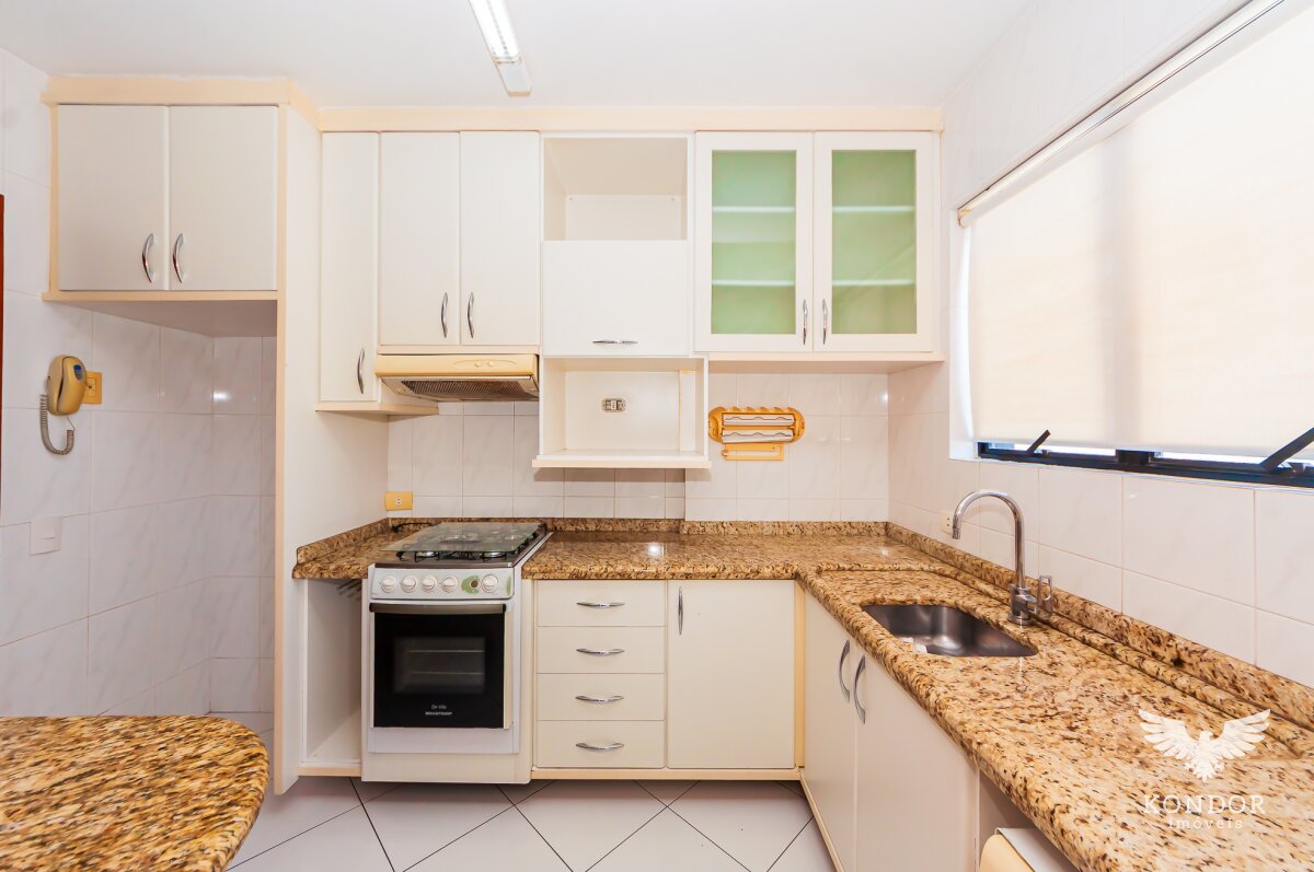 Possui cozinha com móveis planejados, equipada com fogão, depurador e lava-louças, além de lavanderia com armários.