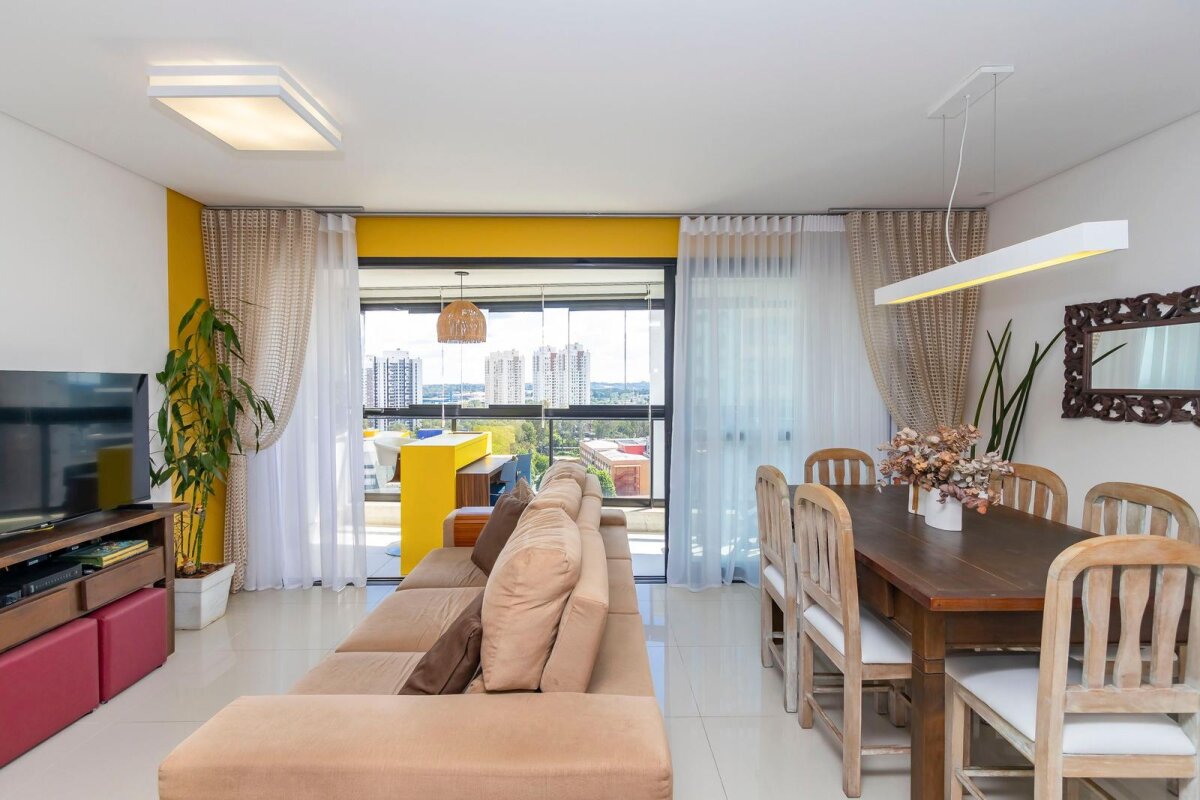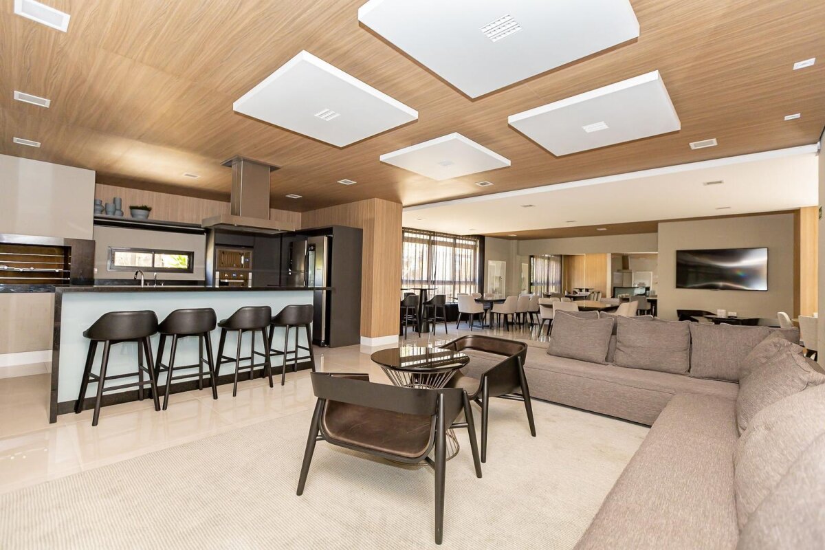 - Sala ampla para dois ambientes com sacada e churrasqueira, tornando o ambiente aconchegante, perfeita para momentos de descontração com a família e amigos