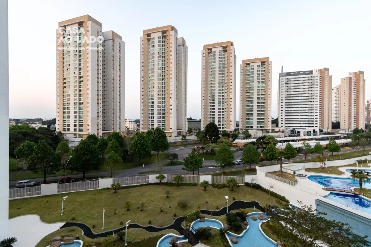 O imóvel conta ainda com duas vagas rotativas de garagem e está inserido em um condomínio clube completo, no coração do Ecoville.