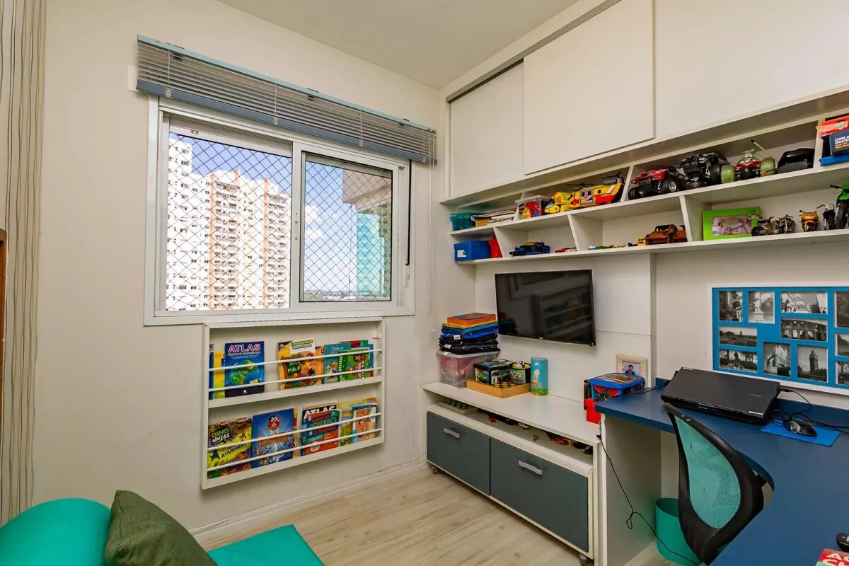 pode ser usado como despensa ou home office. Vaga de garagem coberta para 2 carros. O apartamento já está com ar condicionado na sala, suíte e 1 quarto de solteiro. Vamos falar um pouquinho da área de lazer? Piscina coberta e aquecida para você não ficar sem nadar no inverno e piscina descoberta para aproveitar o verão de Curitiba, cinema com espaço para você mesmo fazer sua pipoca, academia, sala de jogos infantil e adulto, espaço pet onde você mesmo pode dar o banho no seu amiguinho, casa do Tarzan no bosque próprio do condomínio onde seus filhos podem brincar em meio a natureza e com segurança, brinquedoteca, quadra poliesportiva, espaço beleza: traga sua cabeleireira e não precise ir até o salão. Gostou? Ainda tem muito mais!!! O condomínio ainda conta com portaria 24 horas e tem o privilegio de estar próximo a escolas, hospitais, shopping centers e importantes vias de acesso, tornando o dia a dia ainda mais conveniente. Este apartamento une o melhor da vida urbana com a tranquilidade e conforto de um condomínio clube. Não perca a oportunidade de viver em um espaço que oferece qualidade de vida pra você sua família. Entre em contato e agende uma visita agora mesmo.