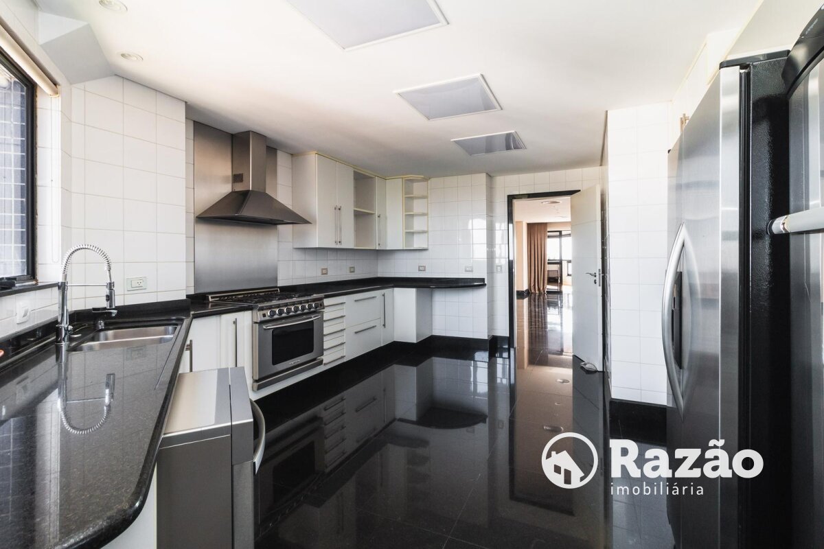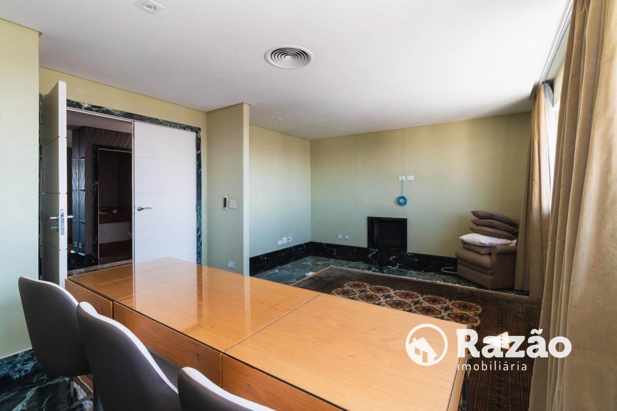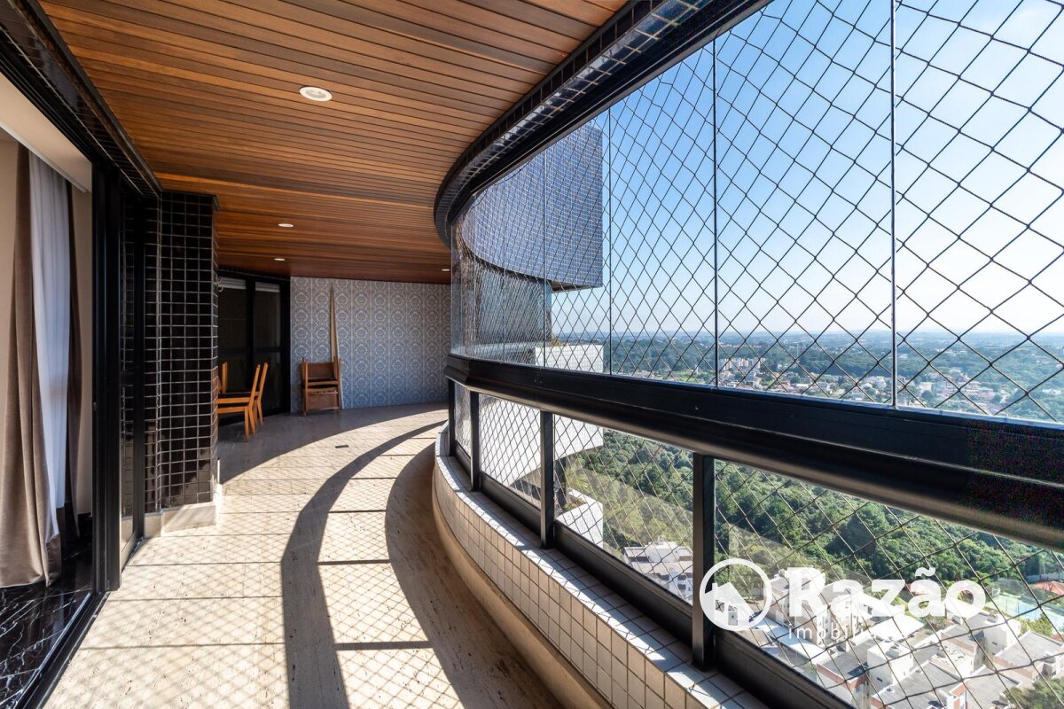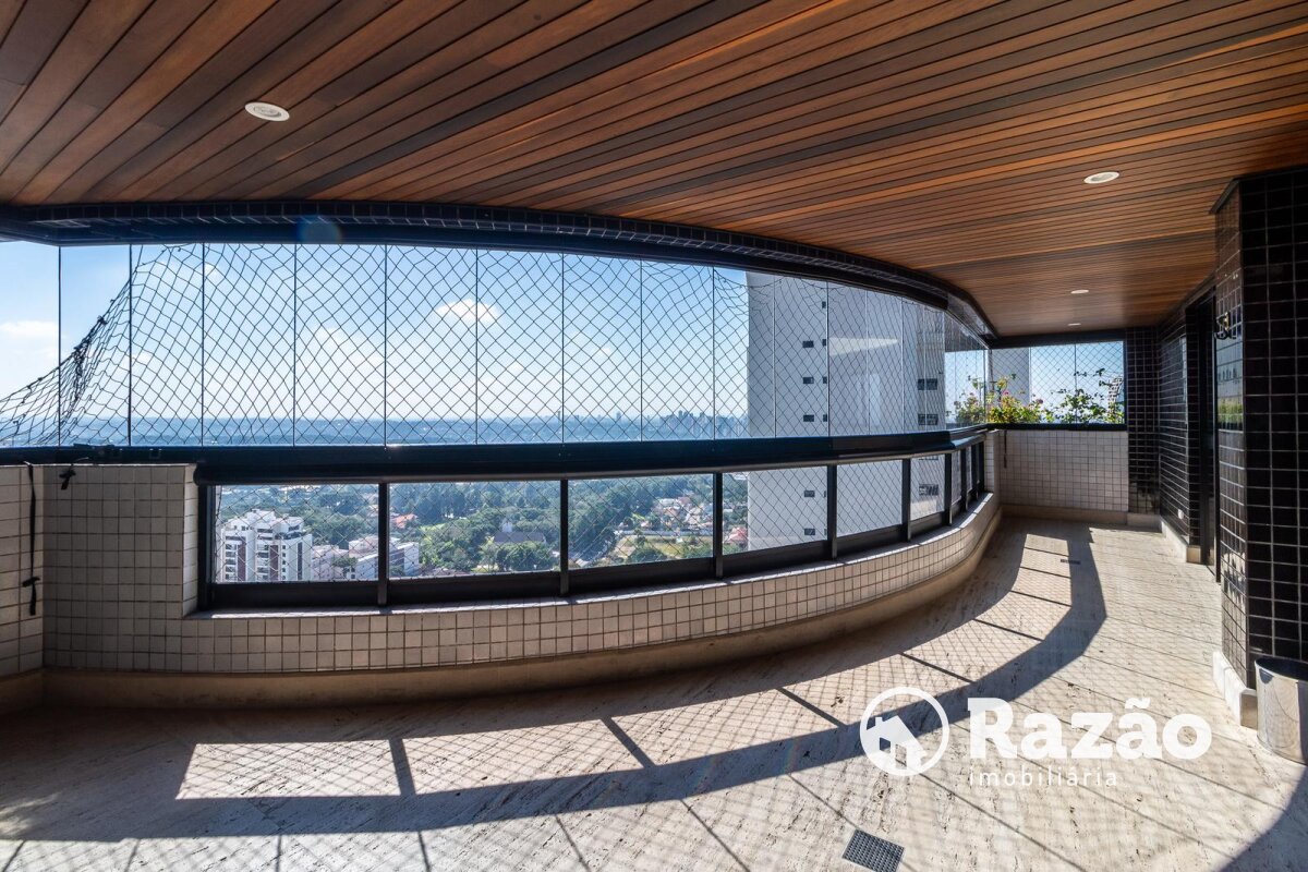 Descritivo: Belíssimo apartamento no Ecoville, com vista 360 graus cinematográfica, atualmente na configuração de 2 suítes master, sendo uma com sala de banho, porém facilmente reversível para a planta original de 4 suítes, sala de estar e jantar com skylight e lareira, escritório com lareira, lavabo, sacada fechada com churrasqueira, ampla cozinha com armários Florence, cristaleira, despensa, lavanderia com armários, dependência completa de empregada, 4 vagas de garagem paralelas nº 25, 26, 27 e 28 no segundo subsolo. Prédio com salão de festas totalmente equipado, espaço gourmet com churrasqueira, academia, quadra poliesportiva, bosque, pista de cooper, duas piscinas aquecidas, playground, 15 vagas de estacionamento para visitantes, espaço para lava-car e gerador para os elevadores, em caso de falta de energia.