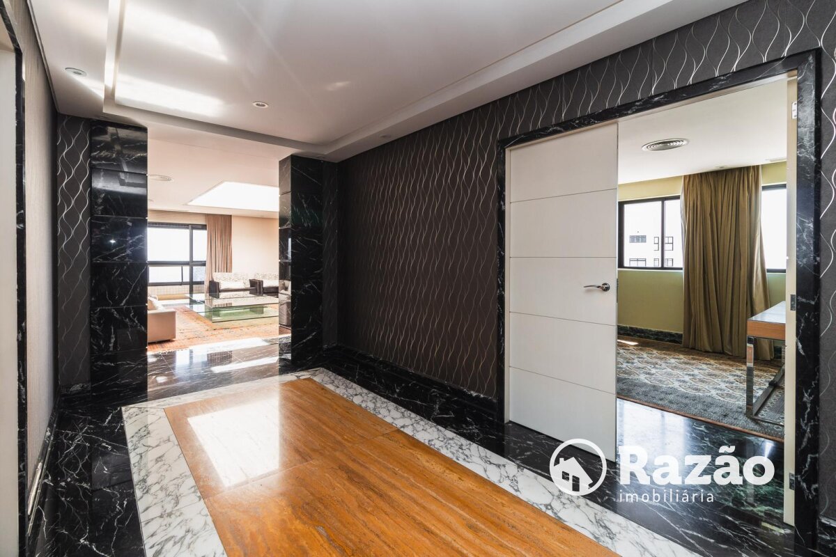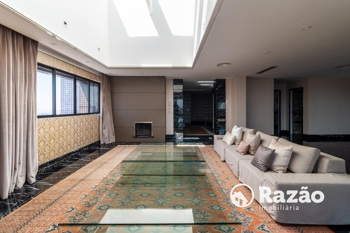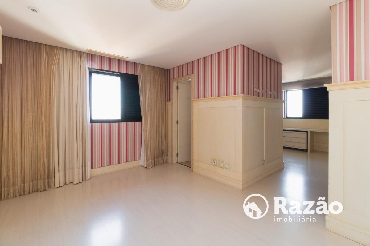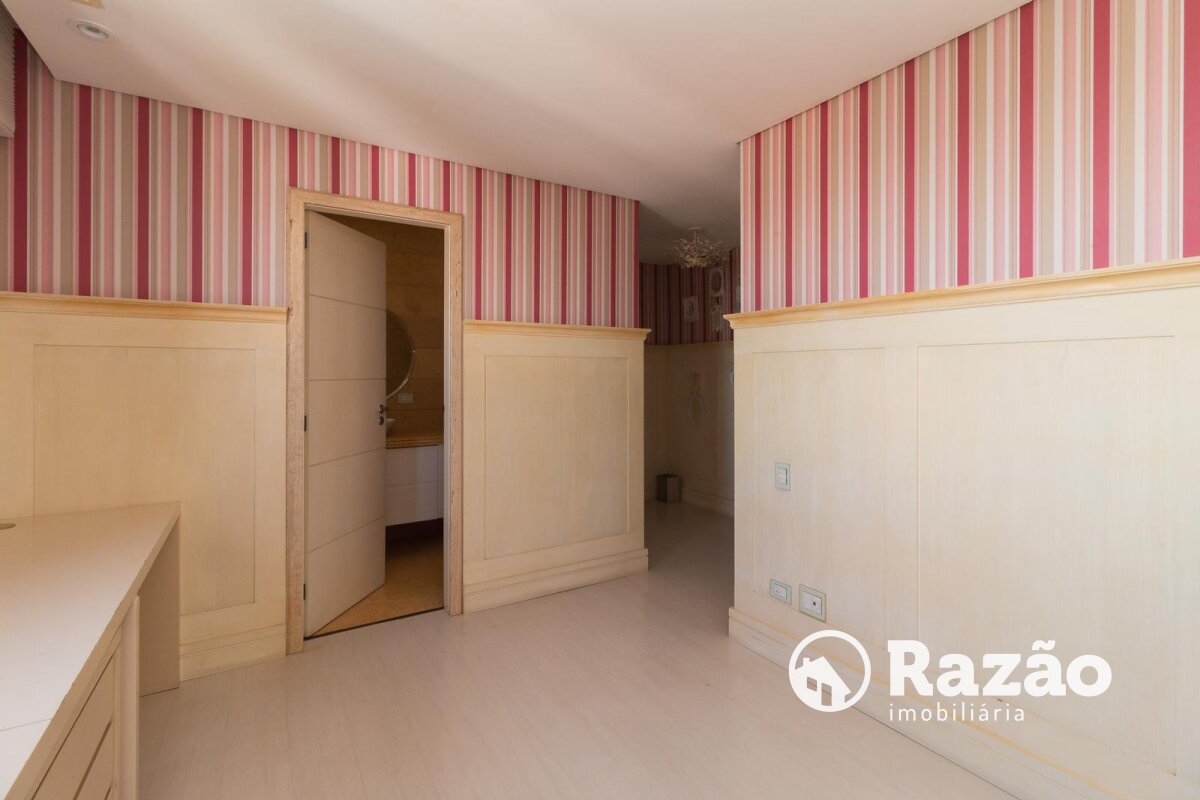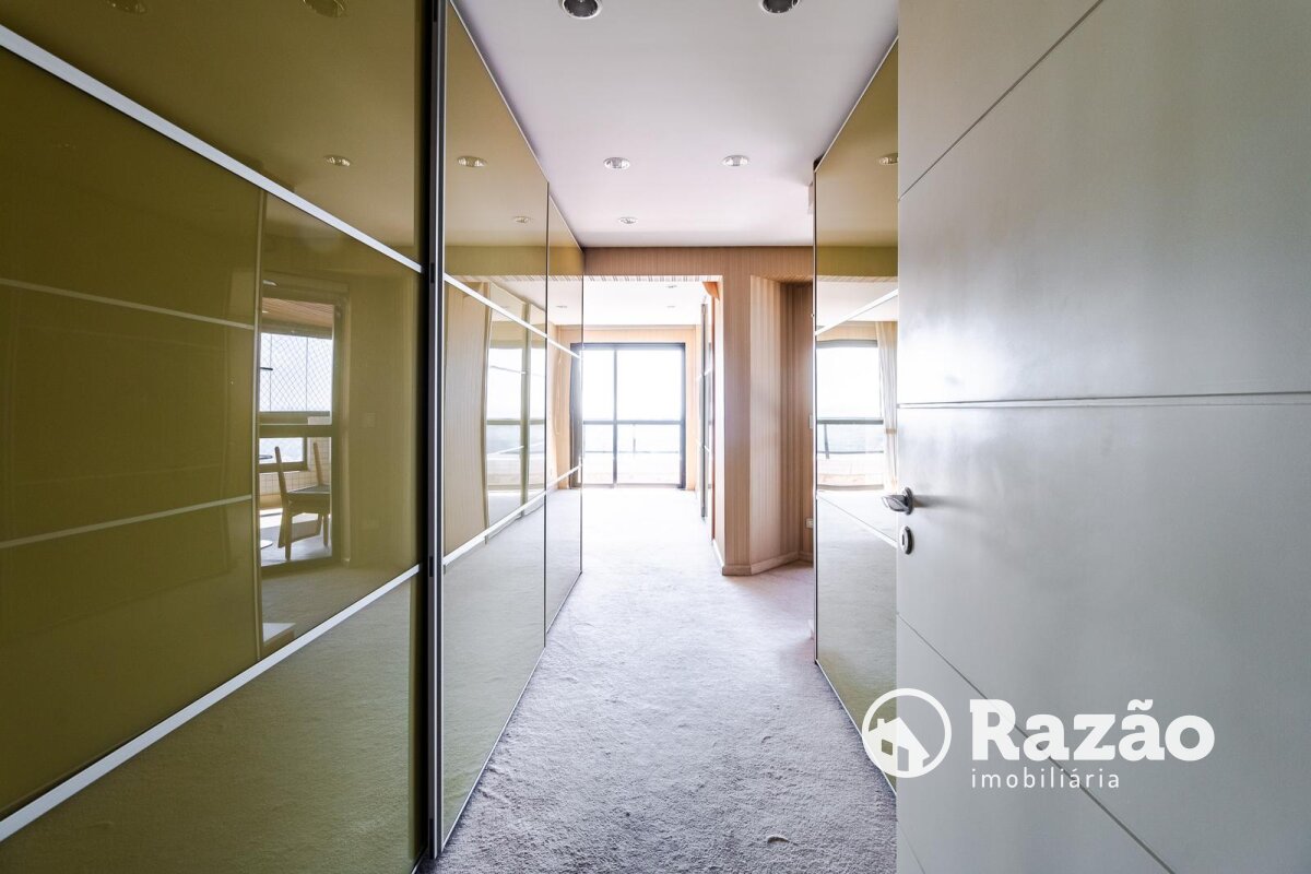 Descritivo: Belíssimo apartamento no Ecoville, com vista 360 graus cinematográfica, atualmente na configuração de 2 suítes master, sendo uma com sala de banho, porém facilmente reversível para a planta original de 4 suítes, sala de estar e jantar com skylight e lareira, escritório com lareira, lavabo, sacada fechada com churrasqueira, ampla cozinha com armários Florence, cristaleira, despensa, lavanderia com armários, dependência completa de empregada, 4 vagas de garagem paralelas nº 25, 26, 27 e 28 no segundo subsolo. Prédio com salão de festas totalmente equipado, espaço gourmet com churrasqueira, academia, quadra poliesportiva, bosque, pista de cooper, duas piscinas aquecidas, playground, 15 vagas de estacionamento para visitantes, espaço para lava-car e gerador para os elevadores, em caso de falta de energia.