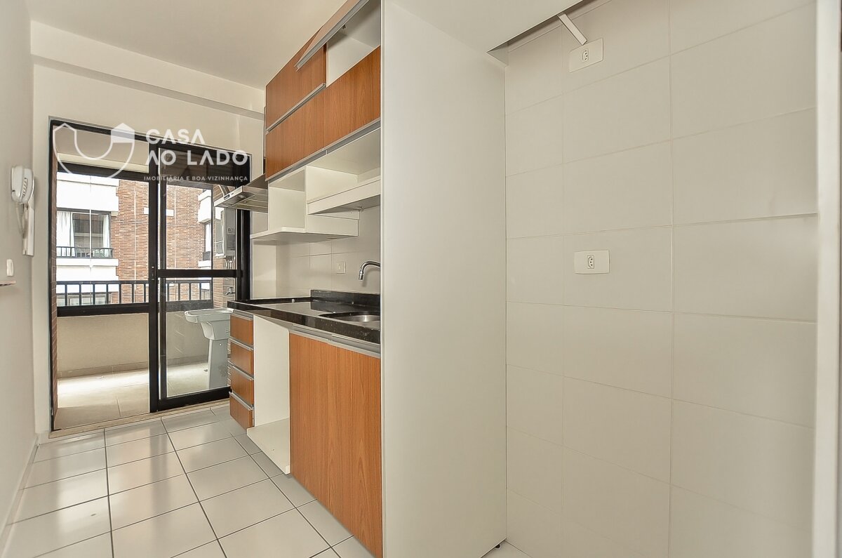 Apartamento com 58 m² de área privativa e 70m² de área total, oferecendo uma planta bem distribuída e ambientes funcionais. A cozinha em estilo aberto conta com balcão, armários embutidos e piso em cerâmica, além de divisão para área de serviço com infraestrutura para aquecimento a gás. A sala é ampla e comporta dois ambientes, com piso laminado e acesso a uma sacada espaçosa fechada em vidro. O banheiro social possui box, armários, metais e revestimento em cerâmica. São 2 quartos, sendo 1 suíte equipada com bancada em pedra, box e metais. O imóvel inclui ainda 1 vaga de garagem localizada no subsolo.