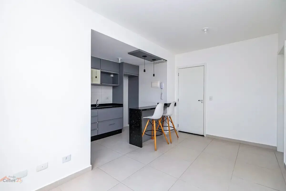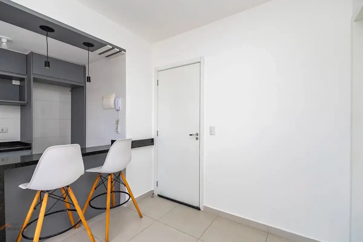 O imóvel conta com 1 quarto amplo, sala para dois ambientes com ótima integração, cozinha semiaberta equipada com armários e bancada, além de lavanderia separada também com armários. O banheiro possui ventilação natural (janela), garantindo mais conforto, e o apartamento dispõe ainda de 1 vaga de garagem marcada.