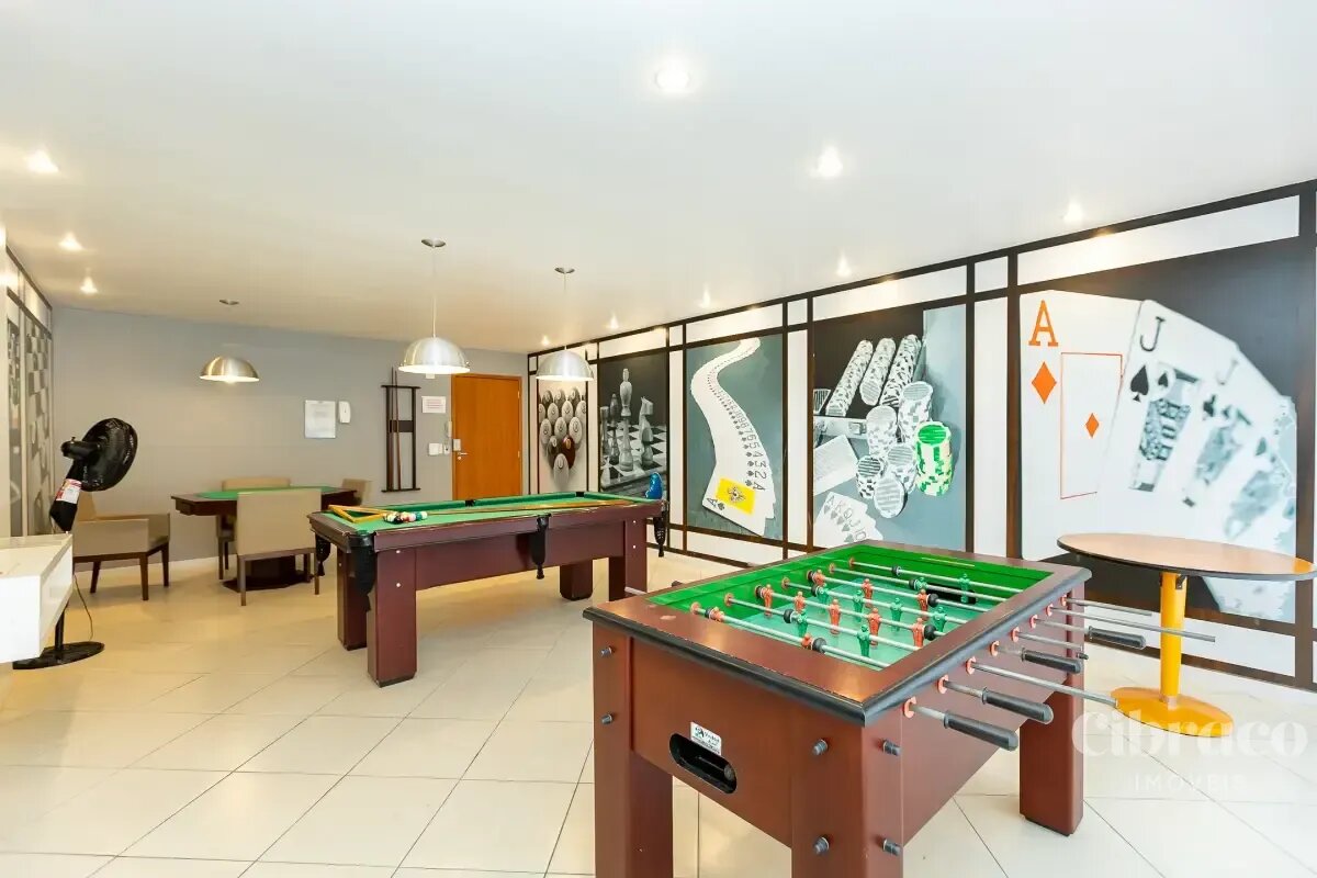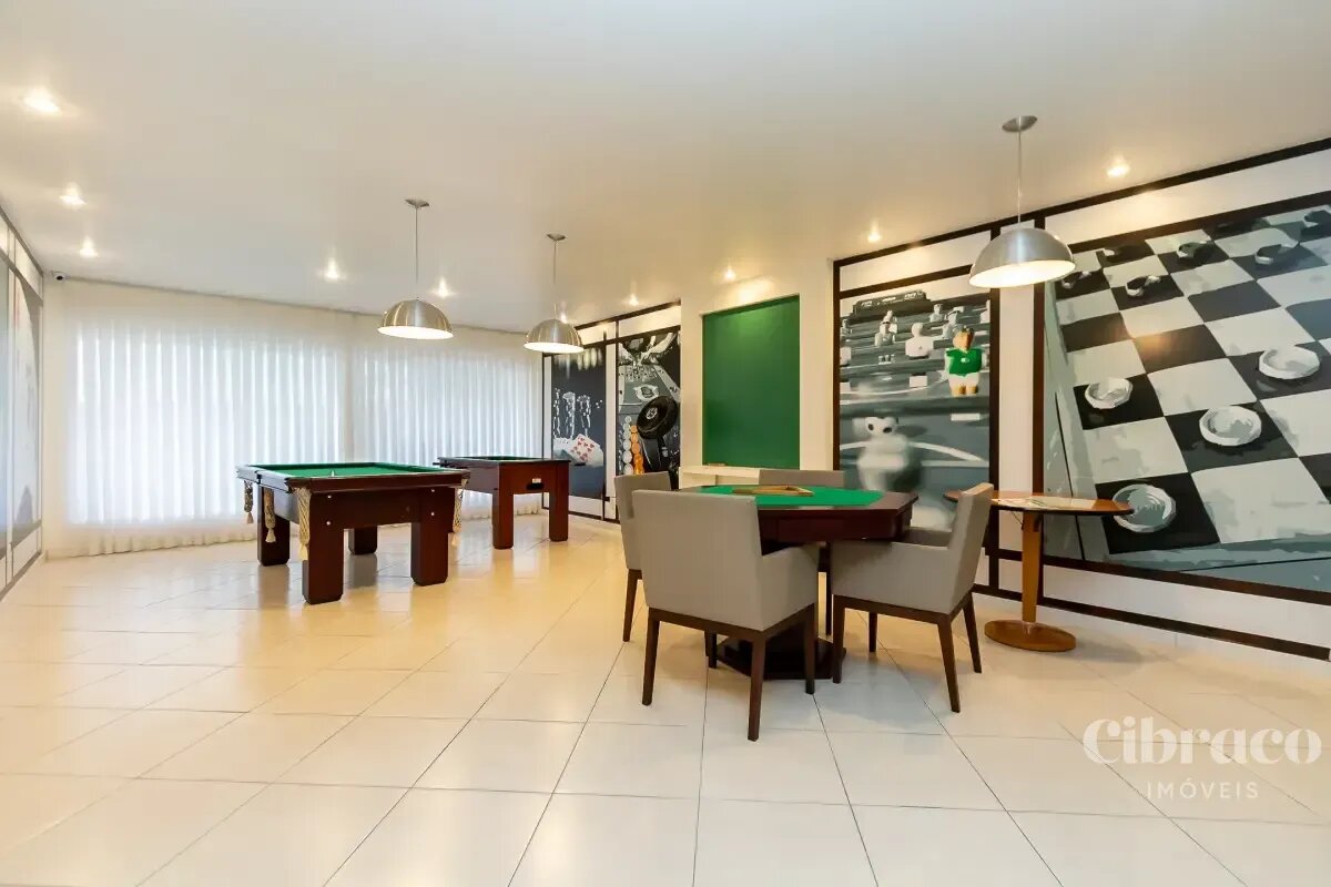 Condomínio com salão de festas, sala de jogos, bicicletário, sala de ginástica, playground, quadra de esportes e piscina.