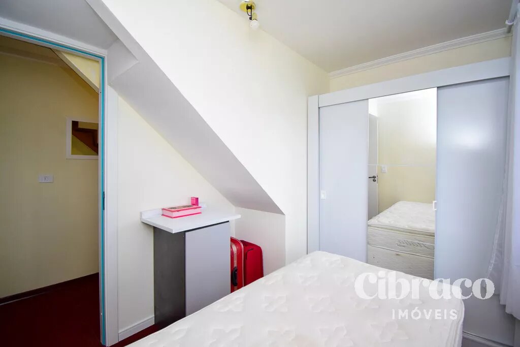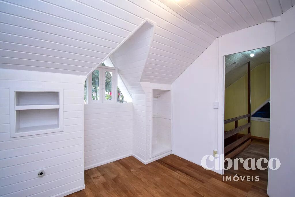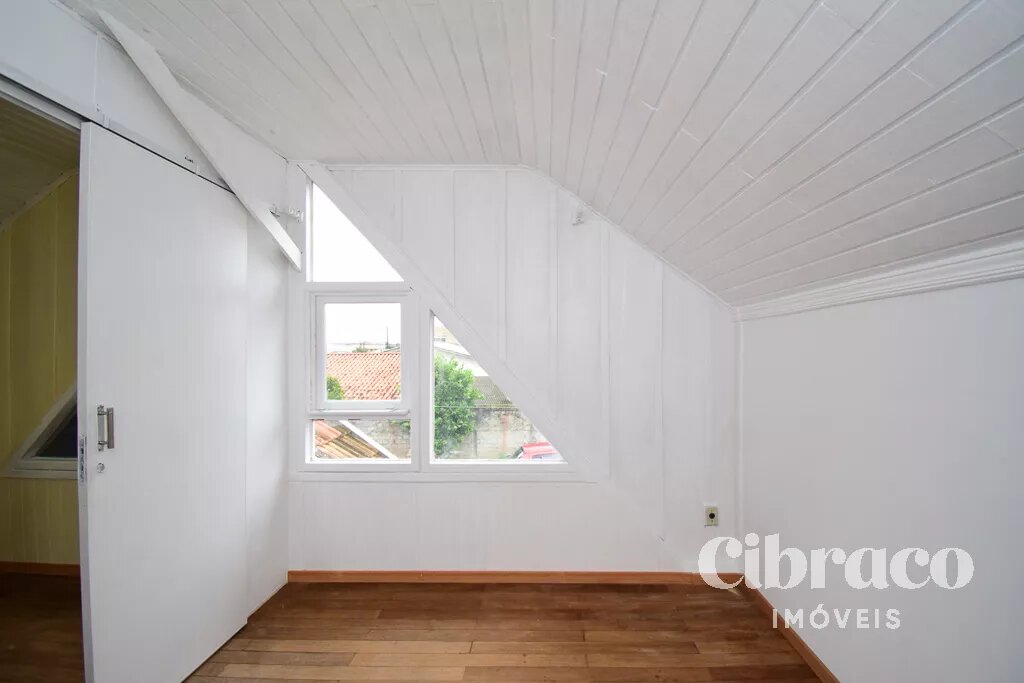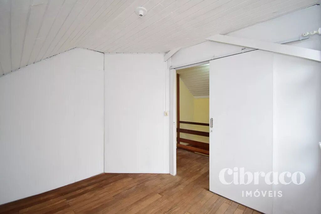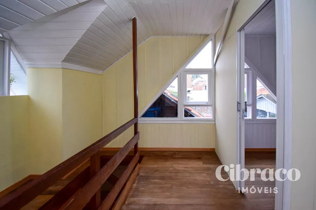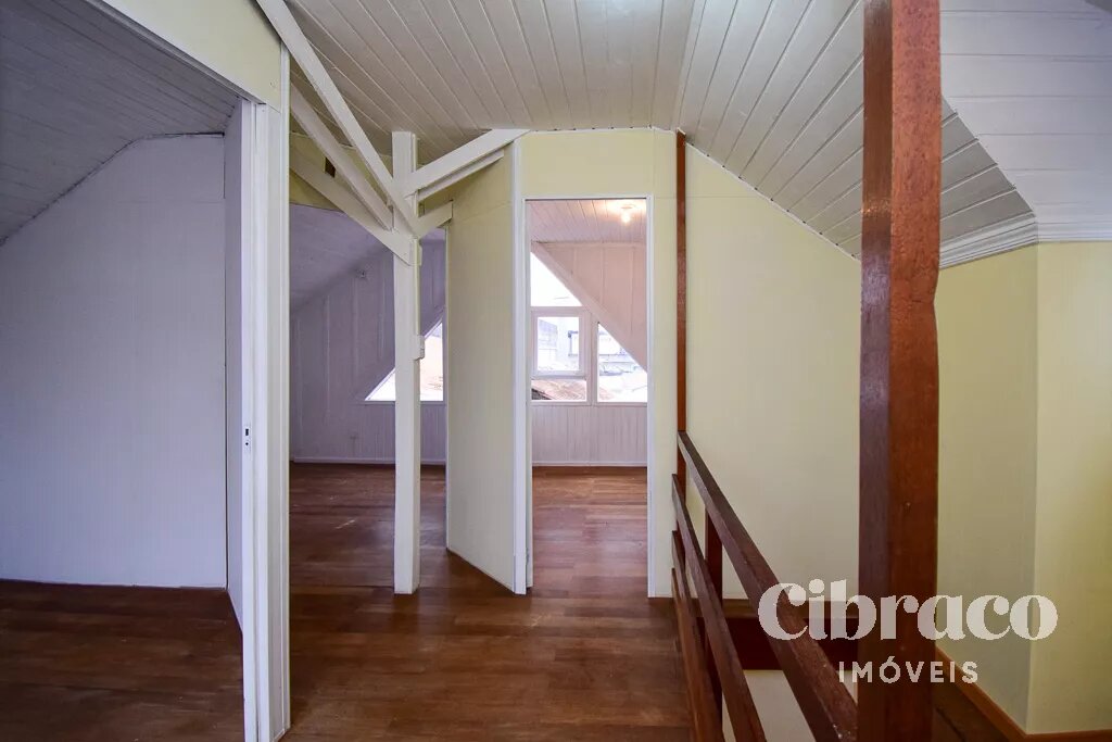 Piso superior com 3 quartos, piso em madeira.