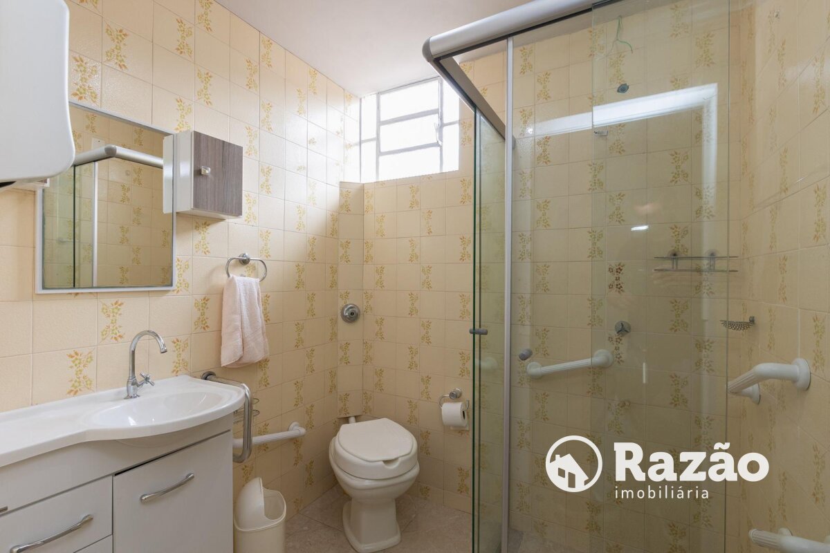 02 Banheiros, sendo 01 banheiro social completo com box de vidro e acabamento refinado e 01 banheiro de serviço com box acrílico para suporte à rotina doméstica