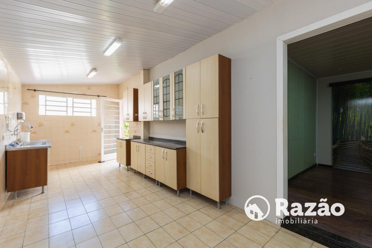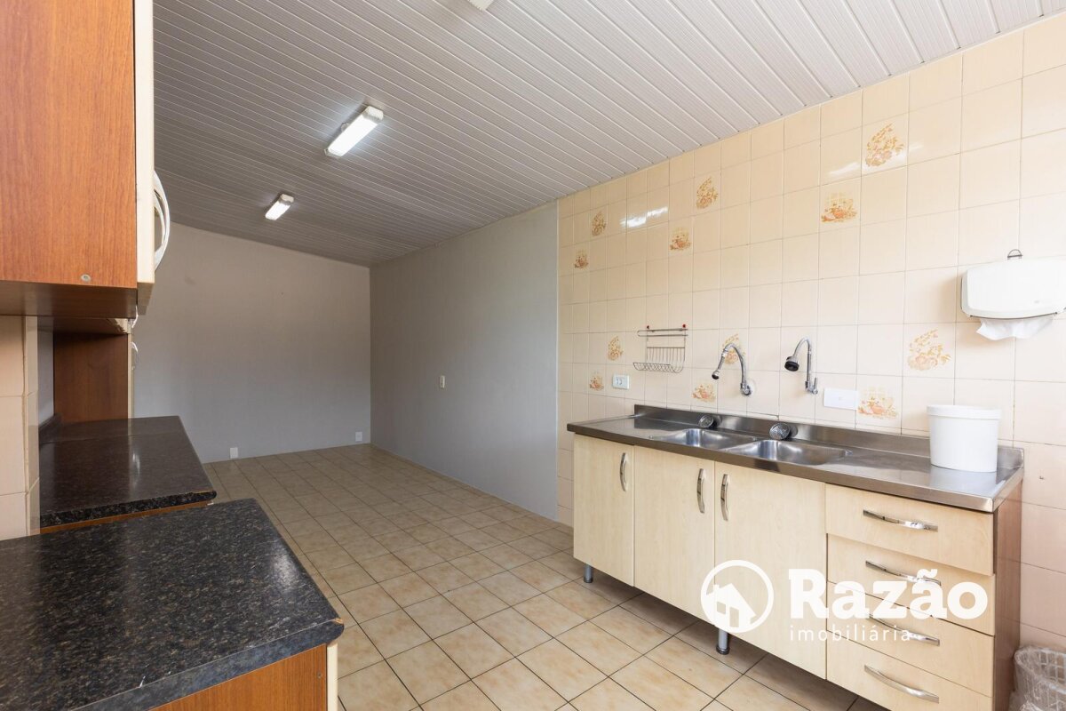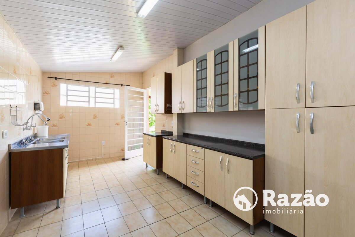 Cozinha equipada com armários e pia em disposição funcional