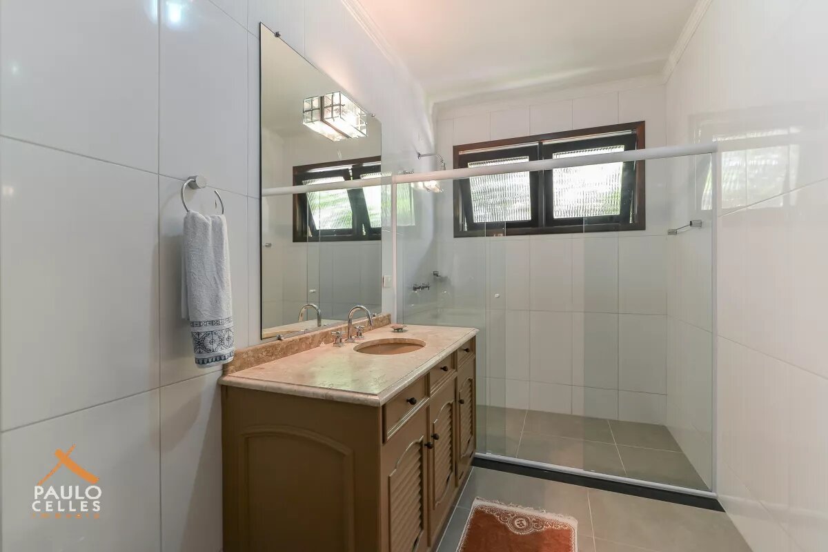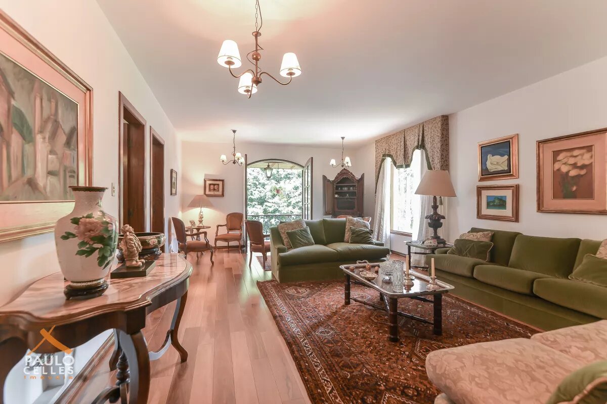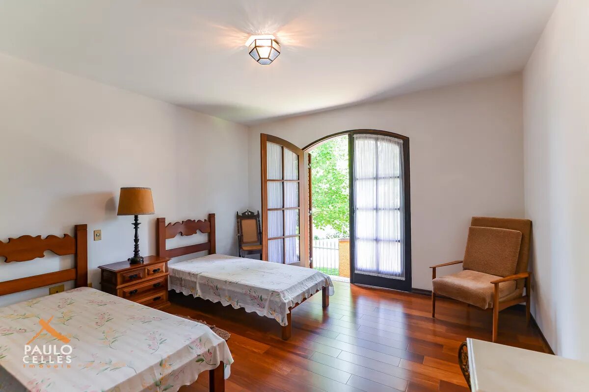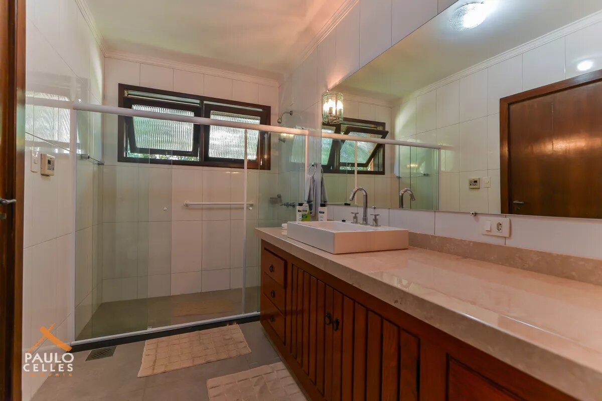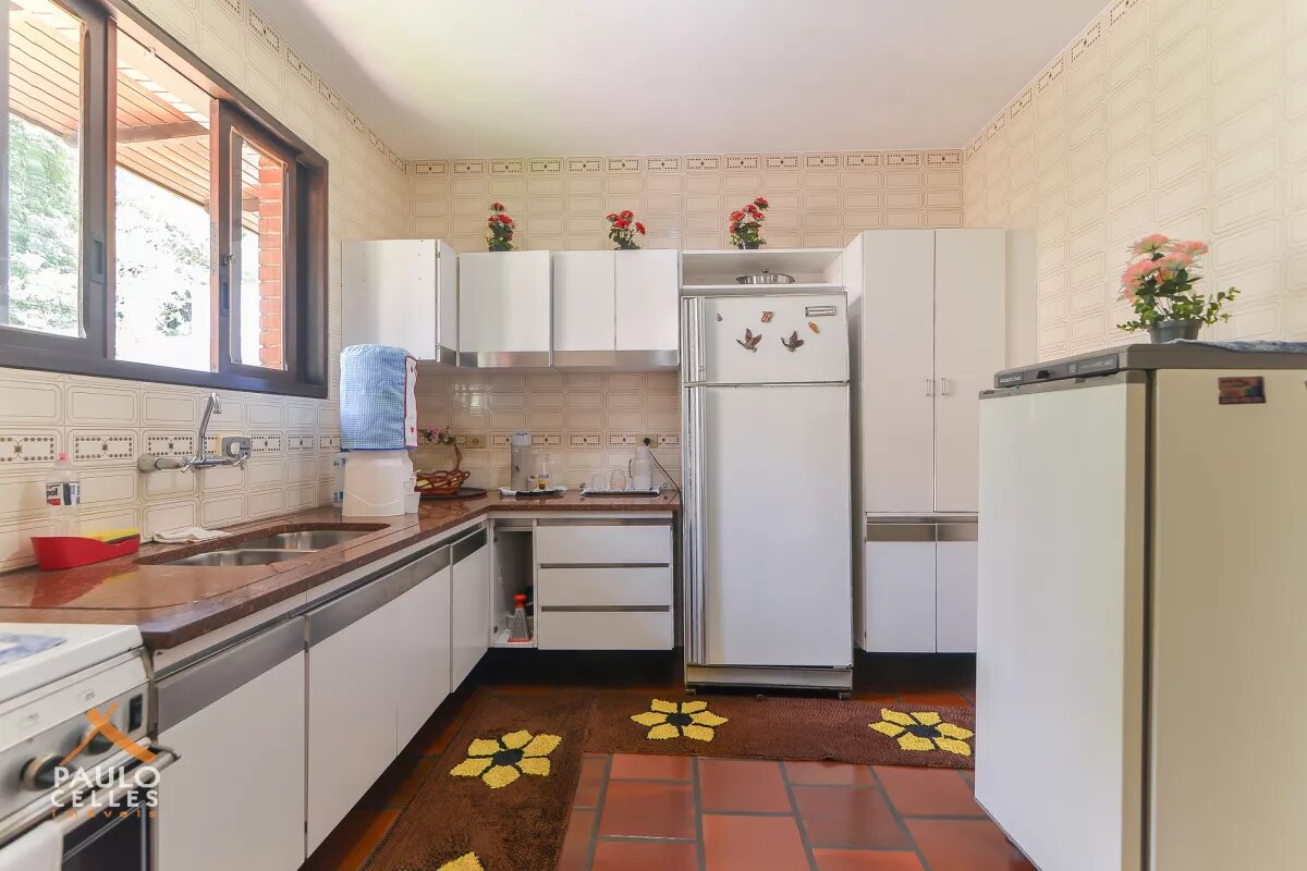 Praticamente térrea, sendo hall de entrada, lavabo, sala de estar com varanda, sala de jantar, estar íntimo com lareira, escritório, suíte principal com closet, cozinha, despensa, e dependência completa de empregada.