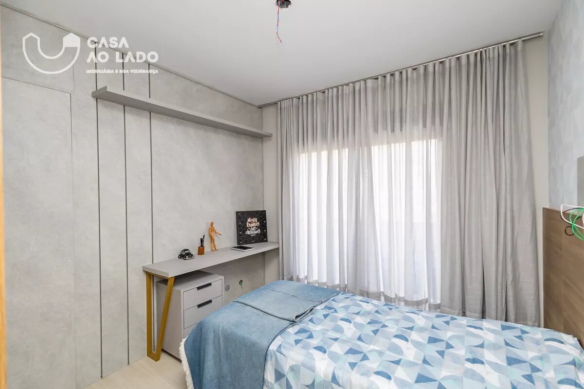 Na área íntima, localizada no segundo pavimento, o imóvel dispõe de três dormitórios bem distribuídos, incluindo uma suíte, além de um banheiro social completo que atende os outros dois quartos.