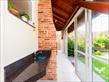 A garagem é coberta para dois veículos e conta com estacionamento para mais dois carros, atendendo com facilidade às necessidades da família.
