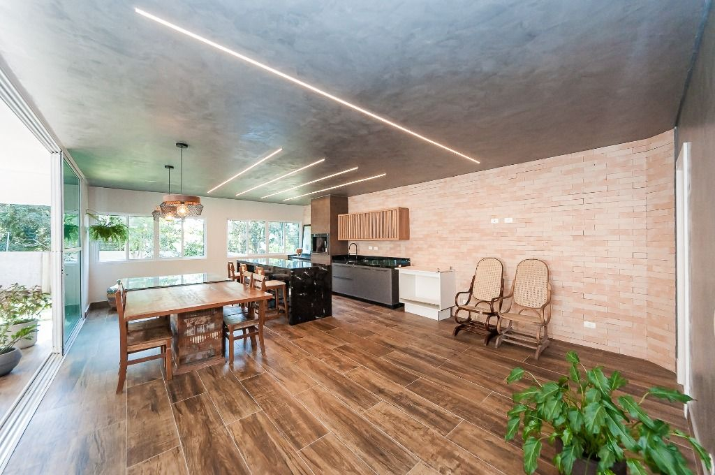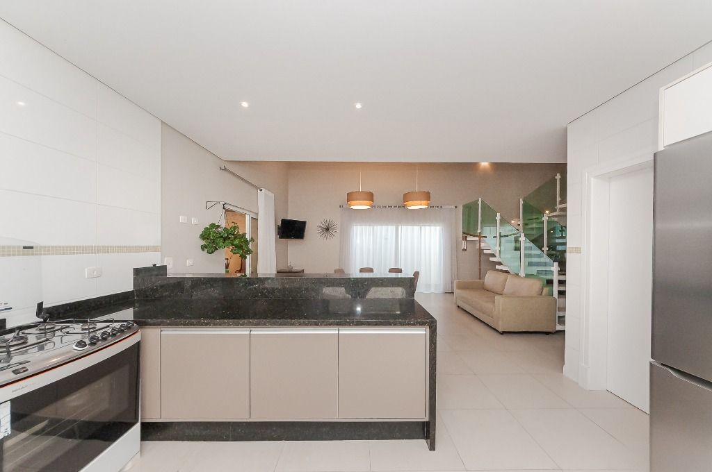 - Ampla cozinha com armários integrada com a sala de jantar.
