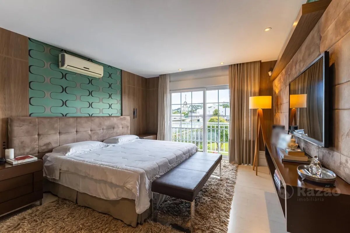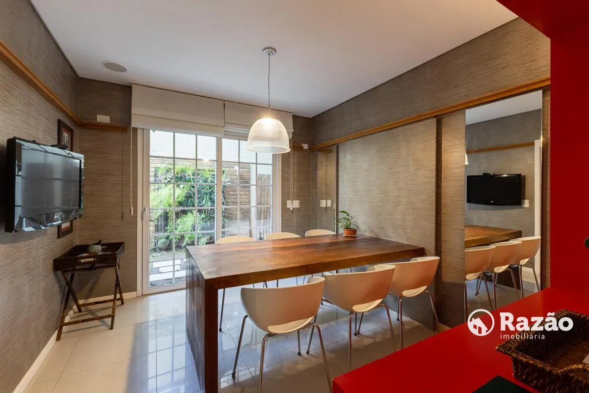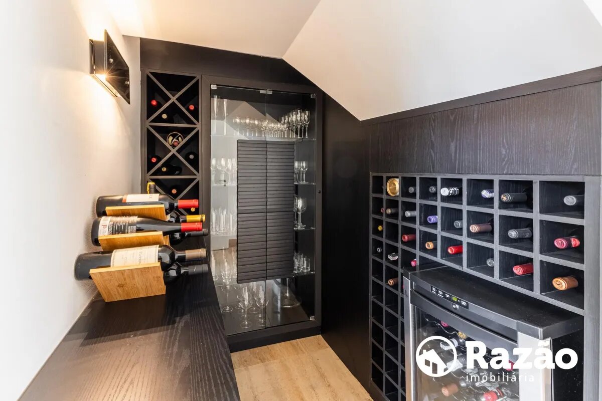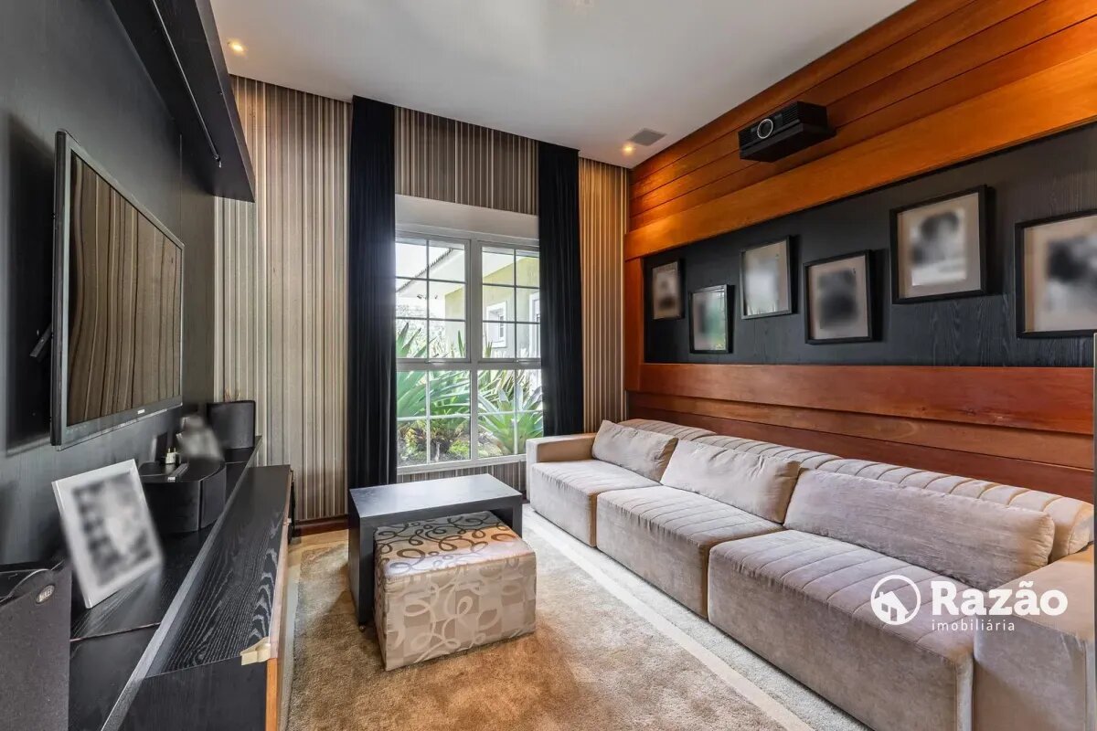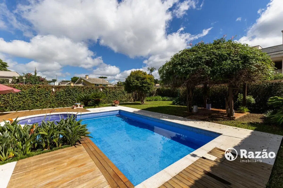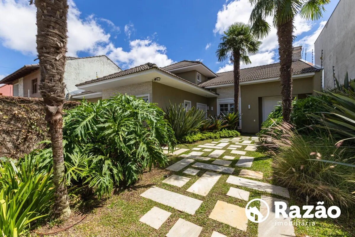 O imóvel conta com um amplo jardim e piscina infantil e adulto. São 5 salas integradas, incluindo 1 sala de estar, 1 sala de jantar, 1 sala de home theater individualizada e uma área gourmet com churrasqueira, forno de pizza, forno de indução e fogão a lenha. Ainda no pavimento térreo há 1 ampla suíte, 2 lavabos (um para visitantes e outro para a área da piscina e gourmet), e uma cozinha espaçosa com despensa. A área de serviço e dependência completa de empregada possuem entrada independente junto à garagem.