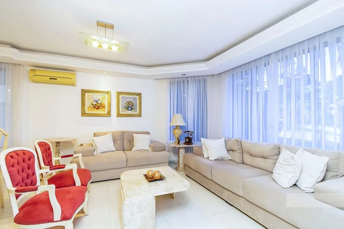 Com 5 quartos, sendo 2 suítes, uma das suítes no térreo.