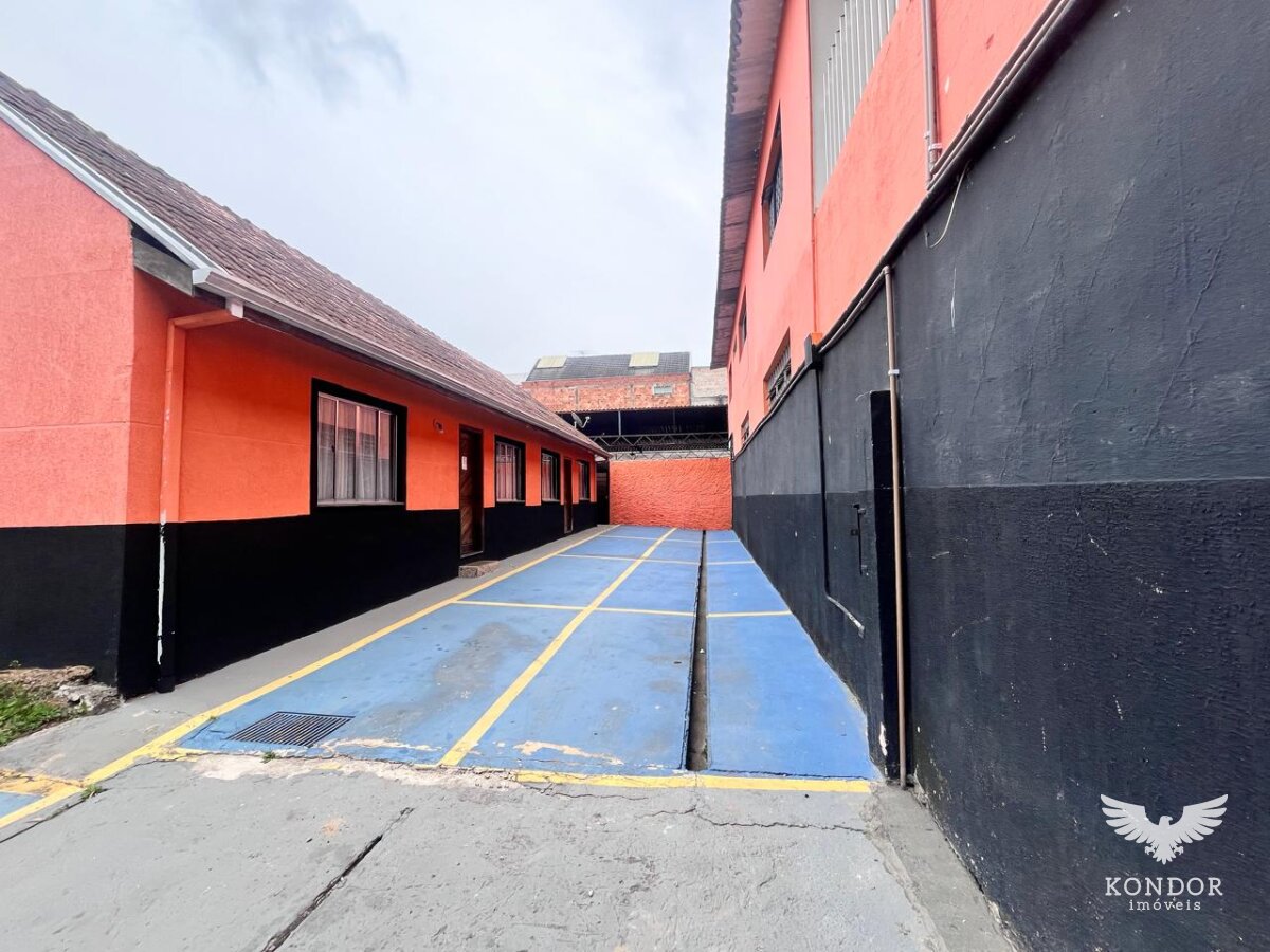 Galpão / barracão em Santa Felicidade, com aproximadamente 529m² de área total construída coberta (sendo 229m² de barracão e aprox. 300m² de outras áreas cobertas), distribuído em salão em vão livre com banheiro, 3 salas com 20m² aproximadamente cada uma + área coberta + 2 banheiros externos e estacionamento.
