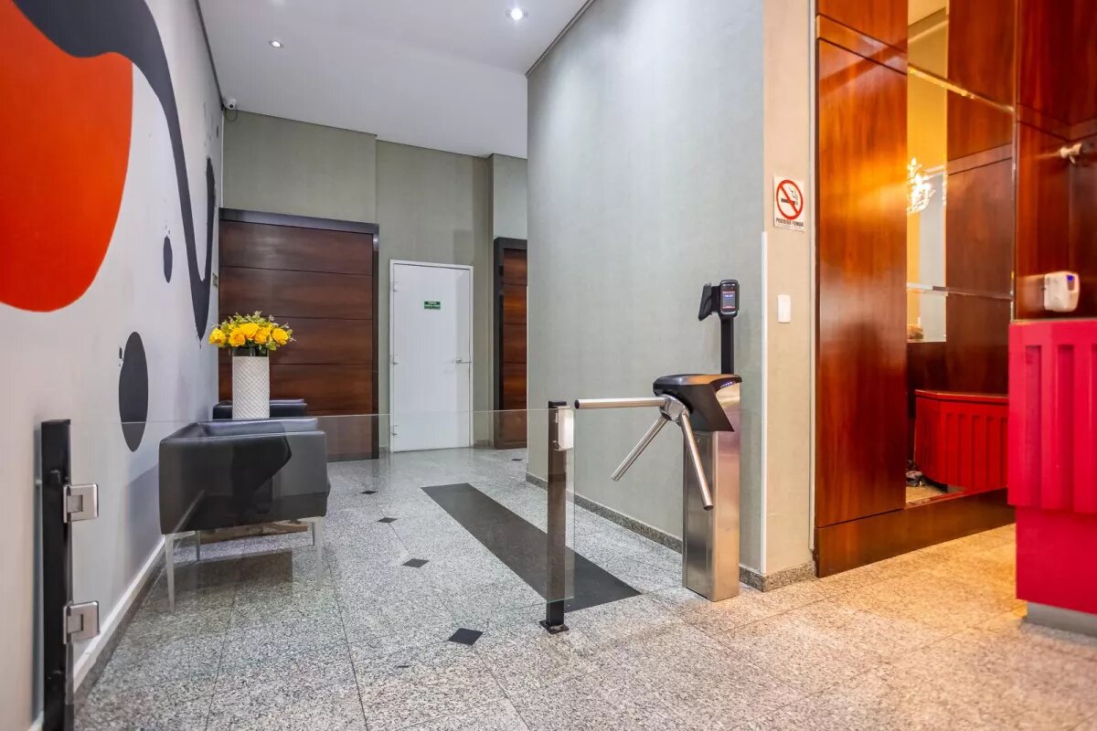 Hall de entrada espelhado com Biometria no acesso, recepção;