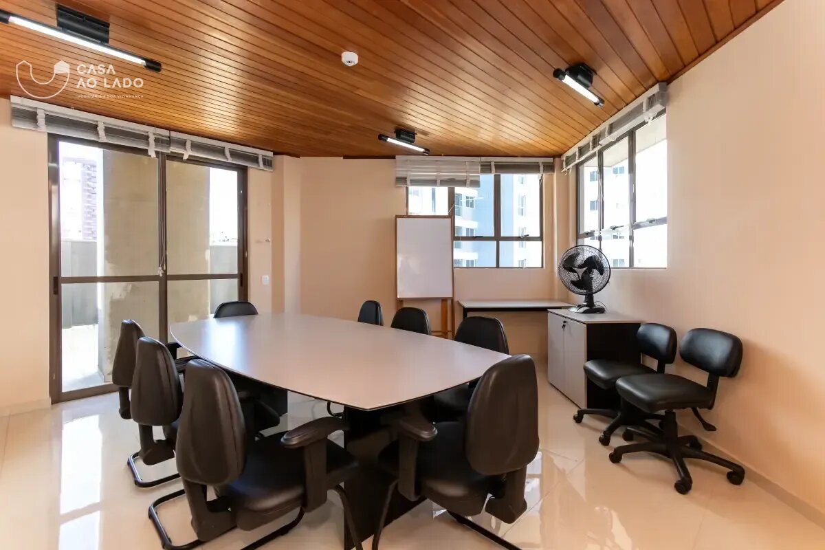 Conjunto comercial com excelente sala ampla, ideal para diversos tipos de negócio. O ambiente conta com piso em taco, trazendo sofisticação e um toque acolhedor ao espaço. Possui copa funcional com armários embutidos e banheiros completos, já equipados com acessórios e metais. Além disso, dispõe de sacada, garantindo ótima ventilação e iluminação natural, tornando o ambiente ainda mais agradável para o dia a dia profissional.