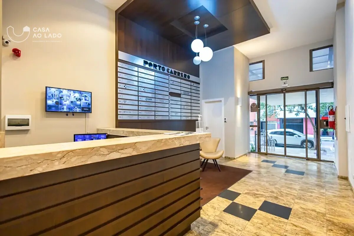 Ed. Comercial Porto Carrero | Oferece comodidades como sala de reunião, espaço gourmet com churrasqueira e ático com terraço, além de elevadores e portaria 24 horas. Valor do condomínio: R$ 424.