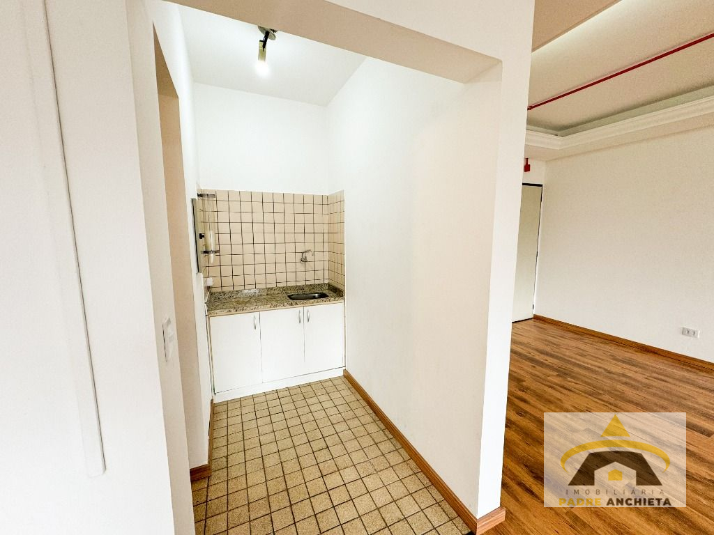 Possui 43,14m² privativos, distribuídos em uma ampla sala, copa e banheiro.