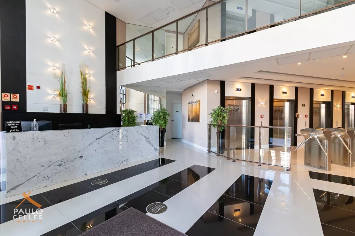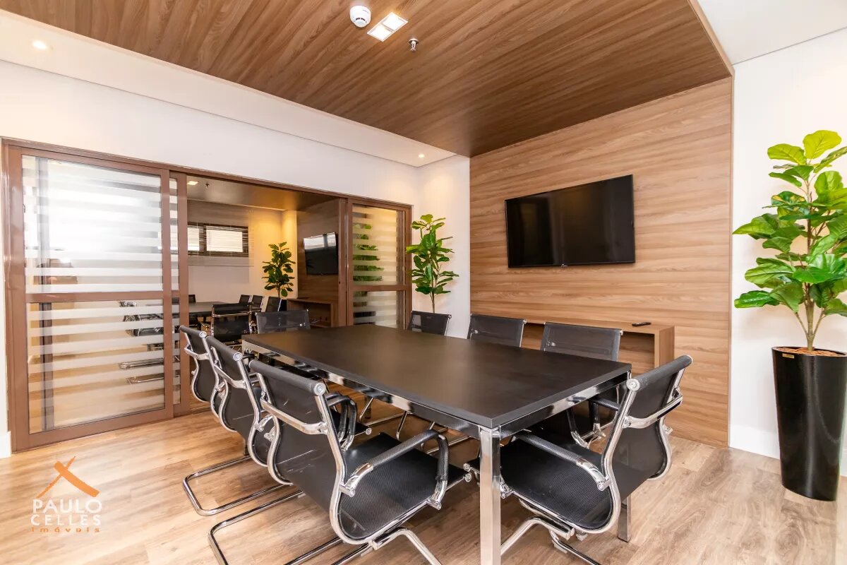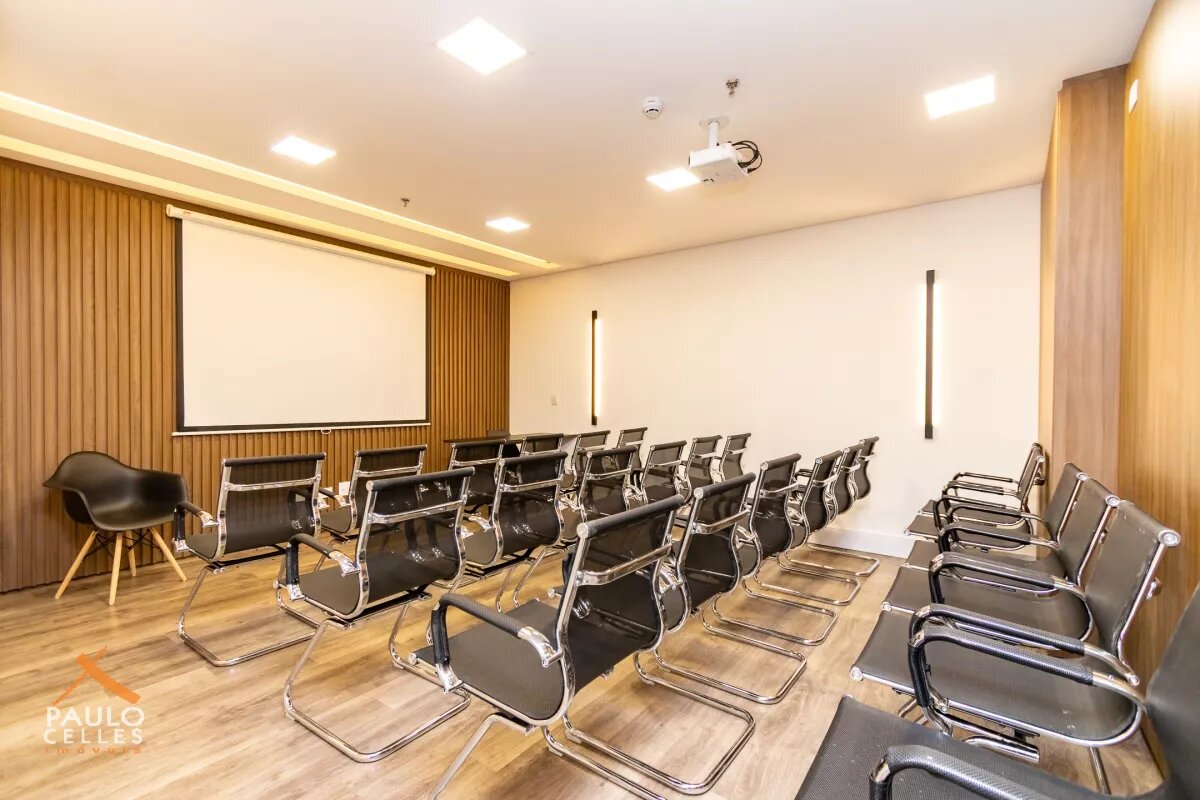 O conjunto possui sala em vão livre com banheiro privativo, proporcionando praticidade no dia a dia e liberdade para adaptar o ambiente conforme as necessidades do seu negócio. No corredor, há uma copa de uso comum que atende todo o condomínio, ideal para refeições rápidas e momentos de descontração.