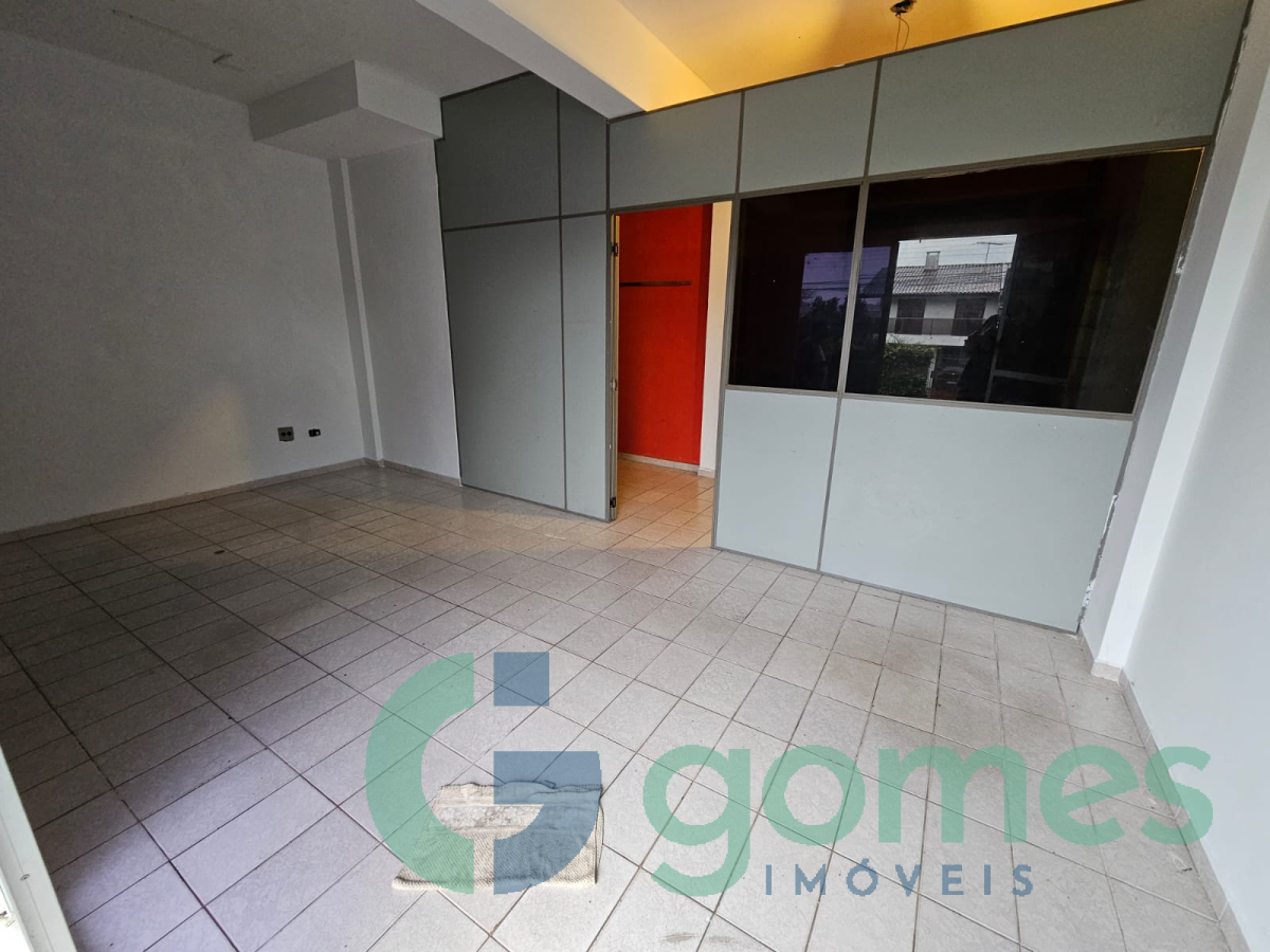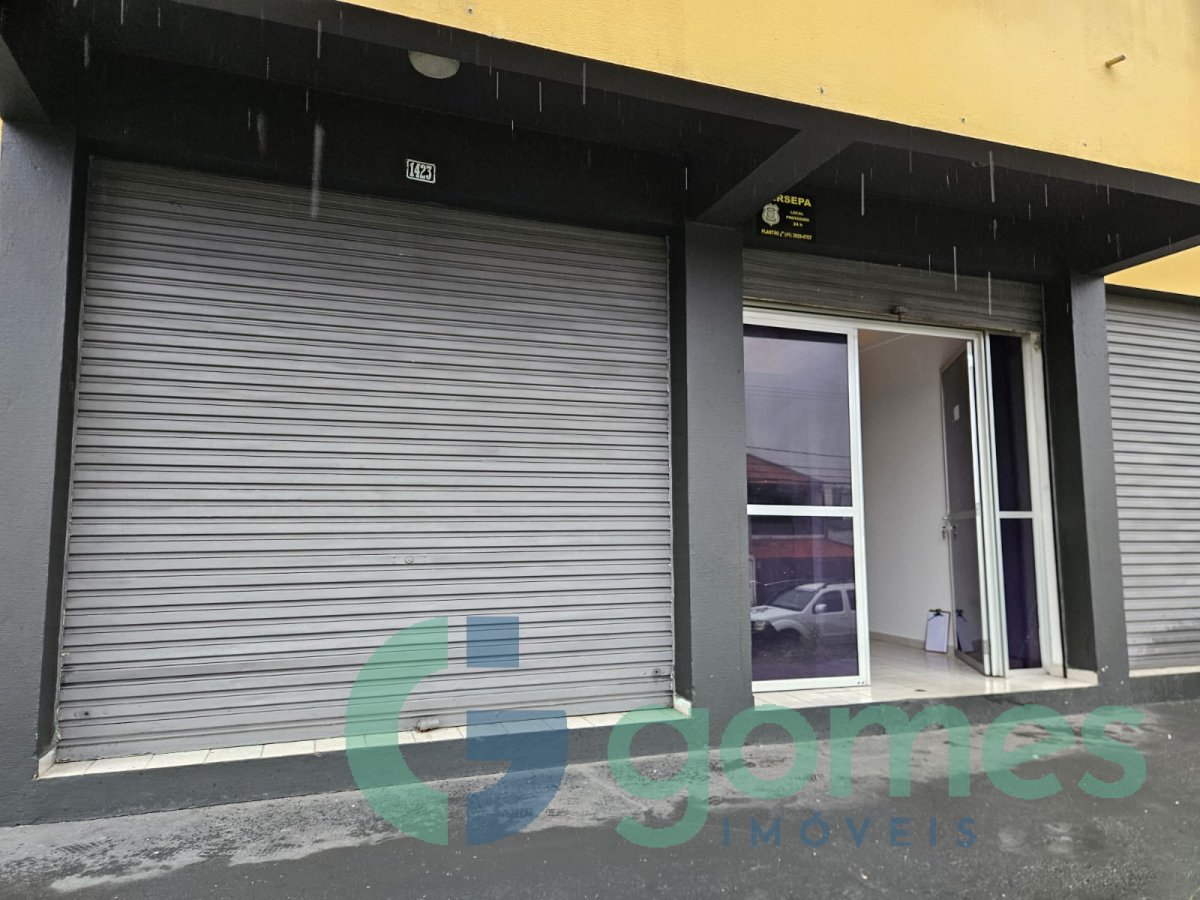 02 portas de aço, sala maior, 01 menor e 01 banheiro, piso cerâmico. Não tem vaga de garagem.