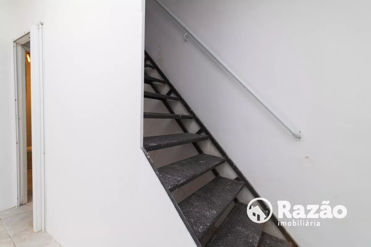Mezanino com estrutura de ferro e escada, ideal para estoque ou área administrativa.