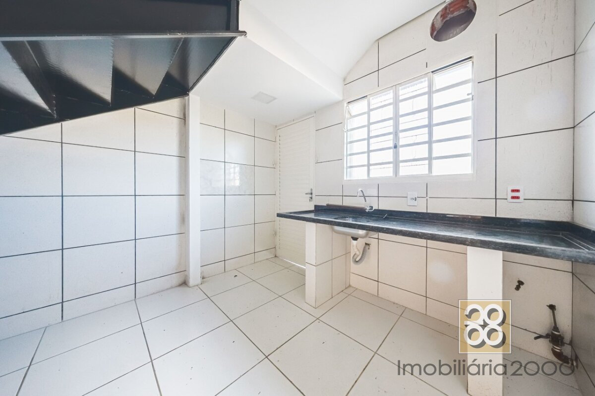 - Ampla sala com porta em vidro, piso cerâmico e teto em gesso com luminárias embutidas, copa com pia e tampo granito e área técnica externa;