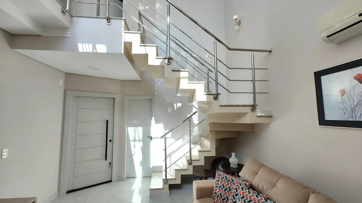 Logo ao entrar no imóvel o destaque fica por conta do pé direito duplo que proporciona a
