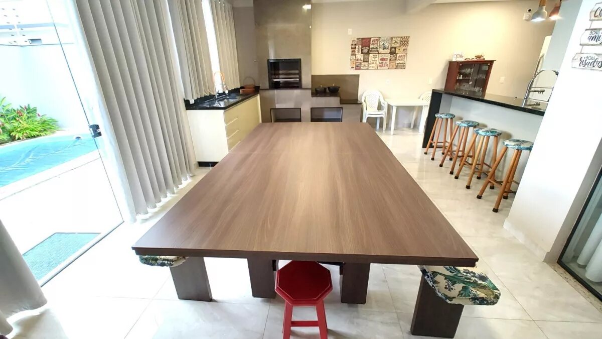 fica por conta da mesa funcional (sinuca, tênis de mesa e jantar), um espaço agradável
